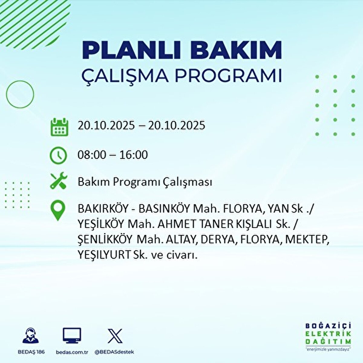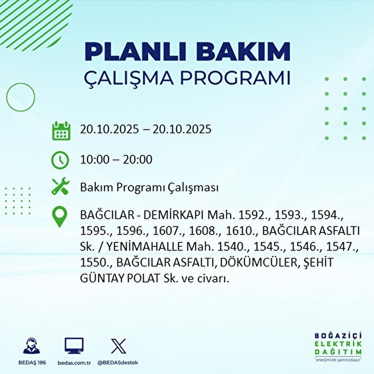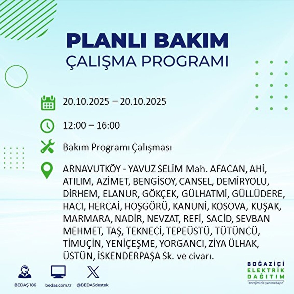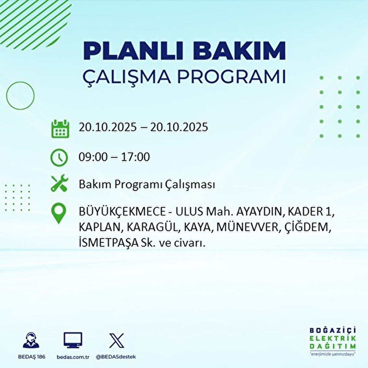 Boğaziçi Elektrik Dağıtım A.Ş. (BEDAŞ), 20 Ekim 2025 Pazartesi günü İstanbul'un Avrupa yakasında geniş kapsamlı planlı elektrik kesintileri uygulanacağını duyurdu. Haftanın ilk gününde başlayan bu kesintiler, sabahın erken saatlerinden itibaren birçok ilçede etkisini gösteriyor. BEDAŞ'tan yapılan açıklamaya göre, zorunlu bakım ve onarım çalışmaları nedeniyle gerçekleştirilen bu kesintilerin bazı bölgelerde 10 saate kadar sürmesi öngörülüyor. Kurum, kesintilerin şebeke güvenliğini artırmak ve altyapıyı güçlendirmek amacıyla hayati önem taşıdığını belirtti. Kesintilerden aralarında Arnavutköy, Avcılar, Bağcılar, Bahçelievler, Küçükçekmece ve Esenler'in de bulunduğu toplam 23 ilçe etkilenecek.