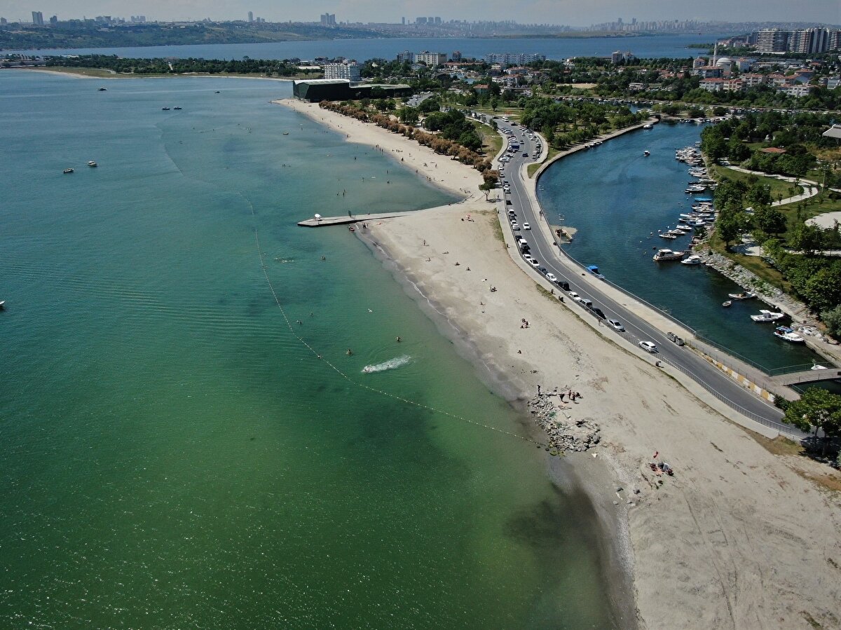 İstanbul sahilleri boyunca kilometrelerce etkili olan müsilaj, drone ile havadan böyle görüntülendi.