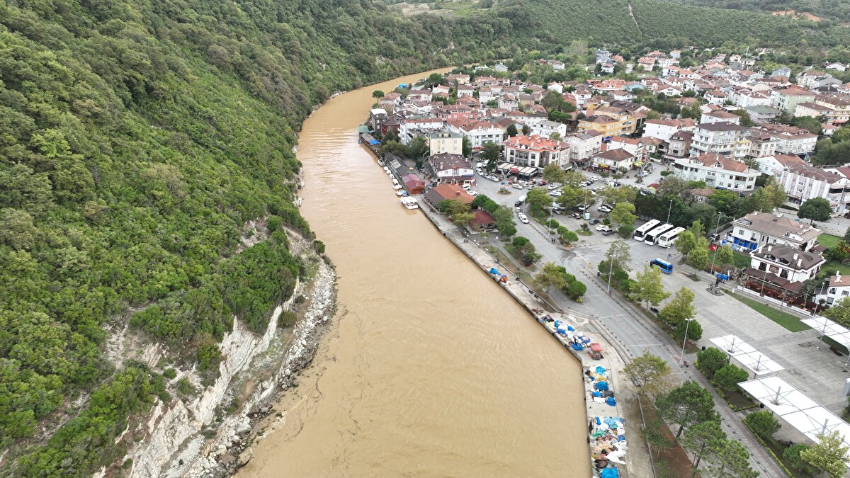 İstanbul Şile Ağva'da bulunan Koca Dere, İstanbul'da etkili olan sağanak nedeniyle taştı, bungalovlar ile bazı evler sular altında kaldı.