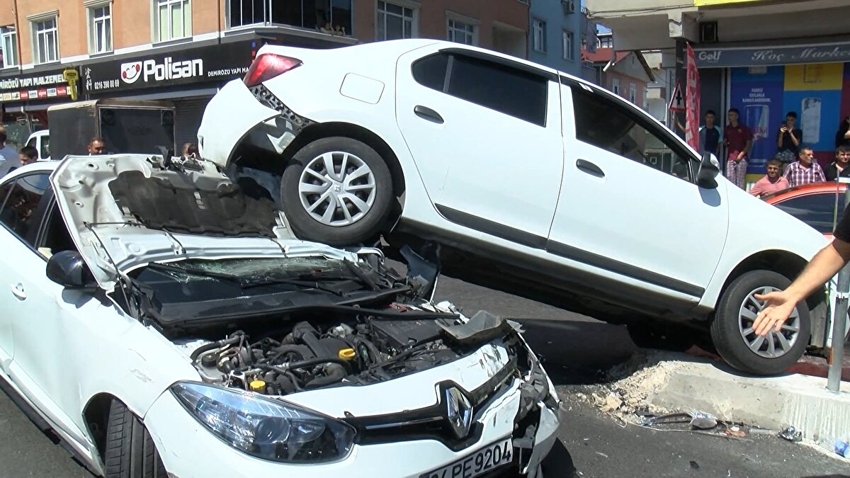 Arkadan gelen 34 PE 9204 plakalı otomobil sürücüsü ise önünde duran otomobile çarptı. Otomobil çarpmanın etkisiyle savrularak önce refüje ardından çarpan otomobilin üzerine çıktı.