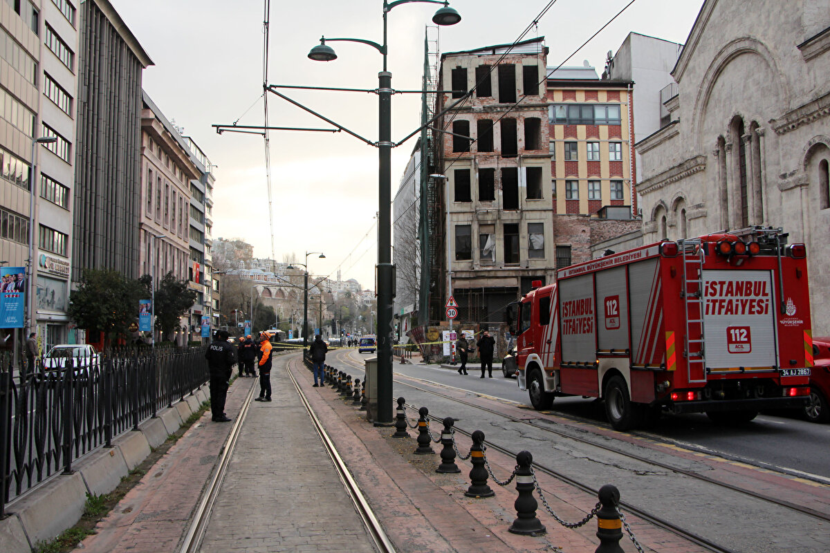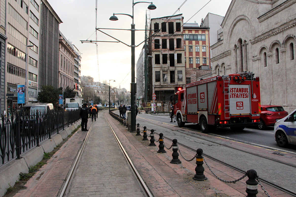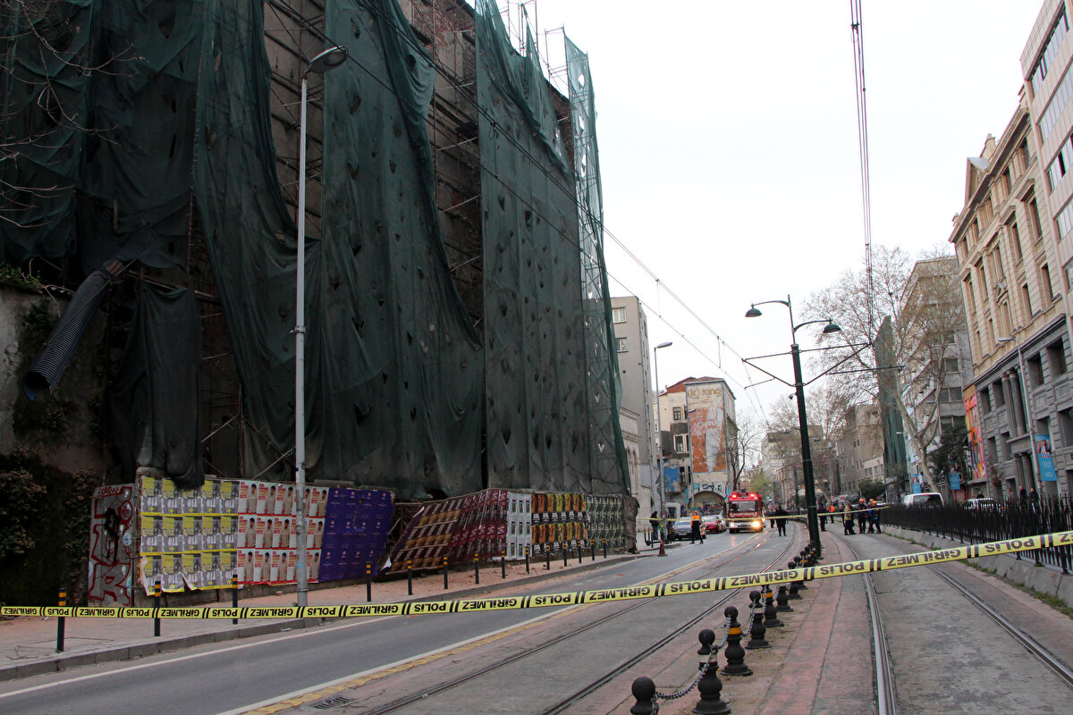 İstanbul Beyoğlu'nda 5 katlı metruk binada yaşanan kısmi çökme nedeniyle yol araç ve yaya trafiğine kapatıldı. Tramvay seferleri de yapılamıyor.
