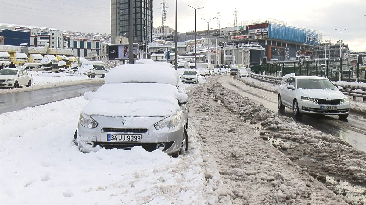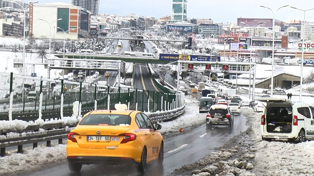 Kar yağışı nedeniyle Basınekspres yolu da kar altında kaldı. Çok sayıda sürücü araçlarını yol kenarına bırakıp evine yaya gitti.