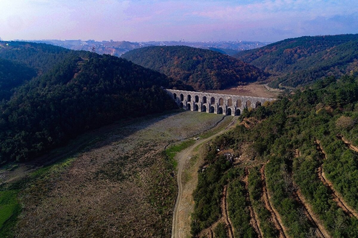 İstanbul'daki barajların doluluk oranları, son 10 yılın en düşük seviyesini gördü. Alibeyköy Barajı'nda bulunan Mağlova Kemeri'nin ayakları suyun azalmasıyla görünmeye başladı.