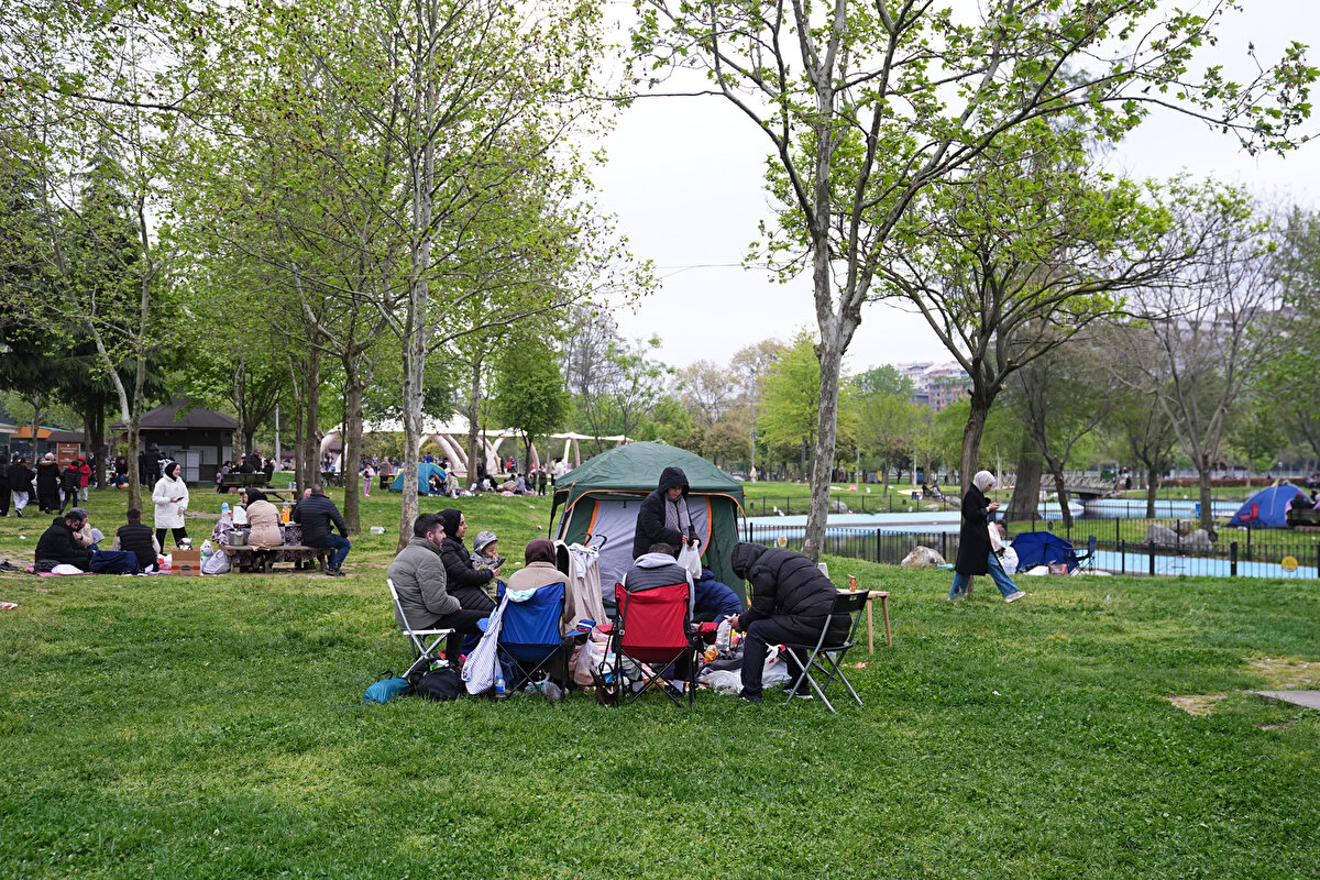 İstanbul'un her iki yakasındaki birçok ilçede yer alan millet bahçeleri, 6,2 büyüklüğündeki depremin ardından evlerine girmek istemeyen vatandaşların toplanma alanlarına dönüştü.