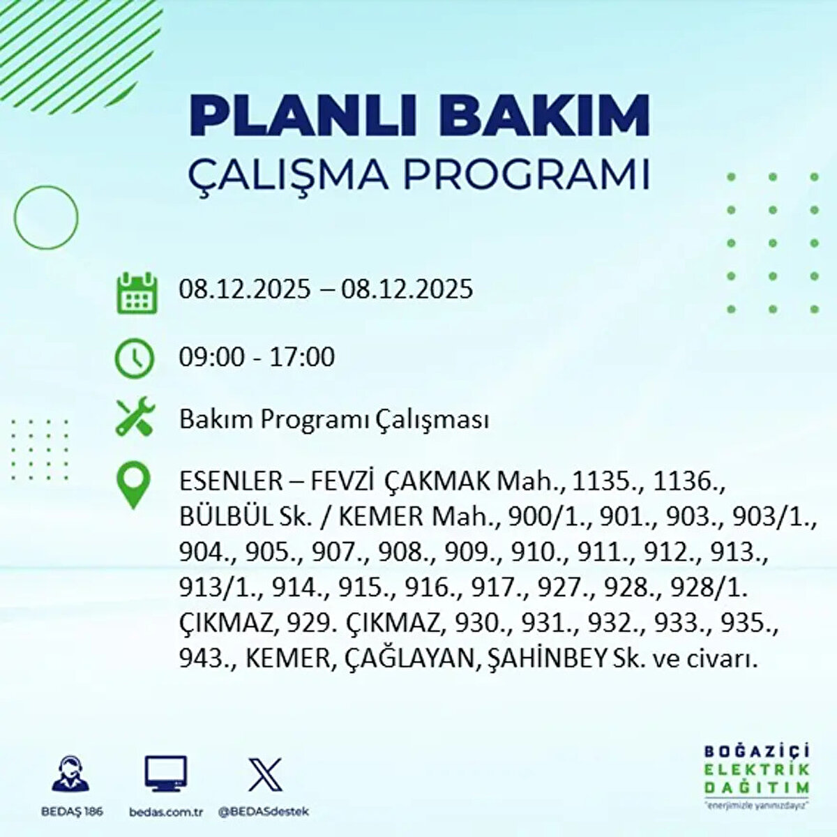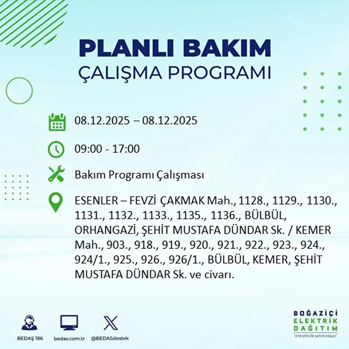 İstanbul’da Elektrik Kesintisi | 23 İlçe Karanlığa Bürünecek: BEDAŞ 8 Aralık Kesinti Listesi ve Saatleri