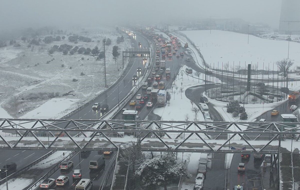 İstanbul’da etkili olan kar yağışı yolları beyaza bürüdü