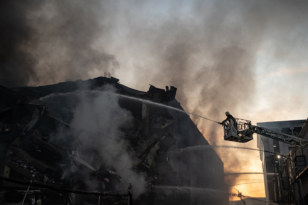 Gıda, plastik, tekstil gibi farklı ürün ve ham maddelerin bulunduğu binanın son iki katında çökmeler meydana geliyor. Binanın dördüncü, beşinci ve altıncı katlarındaki bazı bölümlerde devam eden küçük çaplı yangınlara müdahale ediliyor.