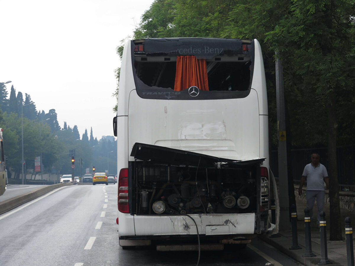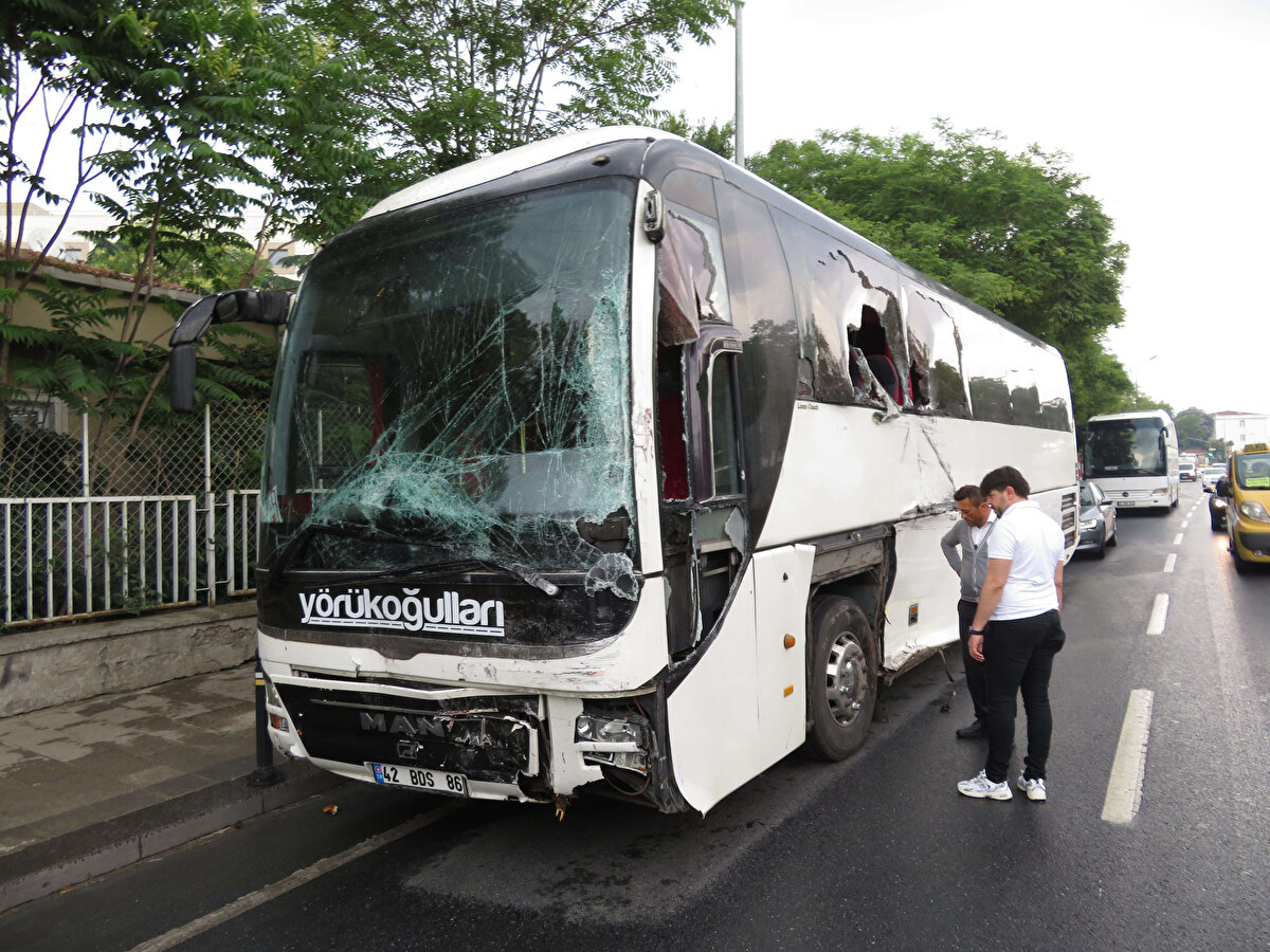 Çarpmanın etkisiyle savrulan tur otobüsü diğer 2 tur otobüsüne çarptı. Bir kişinin yaralandığı kaza nedeniyle cadde trafiğe kapandı.
