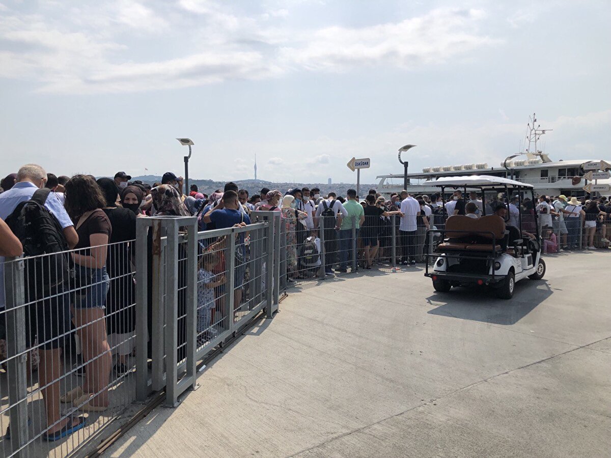 Kurban Bayramı'nın 9 günlük tatilini İstanbul'da geçirenler sabah saatlerinden itibaren Adalar'ın yolunu tuttu. Vapur iskelelerinde uzun kuyruklar oluşurken sosyal mesafe kuralına da dikkat edilmediği görüldü.