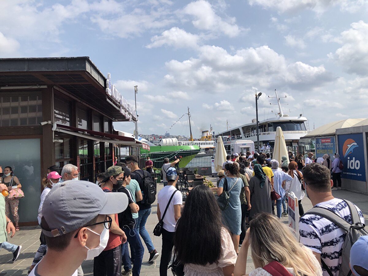 Eminönü'nde ve Kabataş'daki Adalar'a sefer düzenleyen vapur iskeleleri doldu taştı, uzun kuyruklar oluştu.