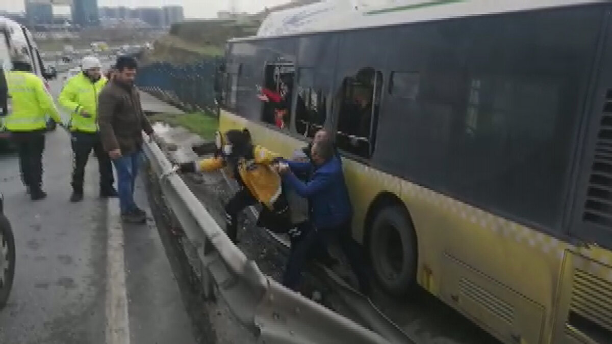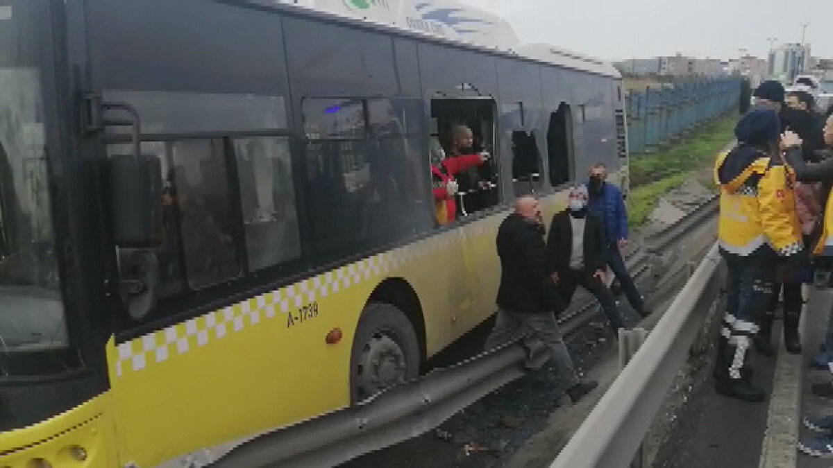 İstanbul Sefaköy'de yoldan çıkan İETT otobüsü, bariyerleri aşıp demir korkuluklara çarptı. Olay yerine çok sayıda sağlık ve itfaiye ekipleri sevk edildi.