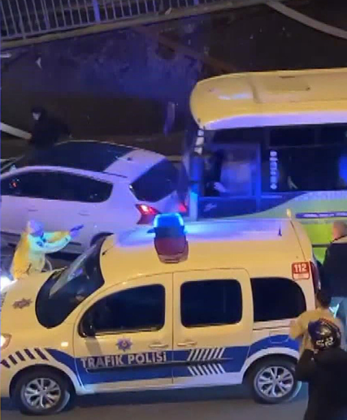 İhbar üzerine trafik polisleri Yöndemir'in kullandığı midibüsü durdurmak için takibe aldı. Trafik polislerinin 'dur' uyarılarına aldırış etmeyen şoför Erhan Yöndemir, 15 Temmuz Şehitler Köprüsü'ne kadar yoluna devam etti. Bu sırada köprüden de geçen özel halk midibüsünün D-100 Karayolu Okmeydanı mevkiinde önü kesildi. Polis ekipleri burada da midibüs şoförüne 'dur' ihtarında bulunsa da midibüs önündeki araçlara da çarparak yoluna tekrar devam etti. Polis ekipleri midibüs şoförünün durması için havaya uyarı ateşi açtı.