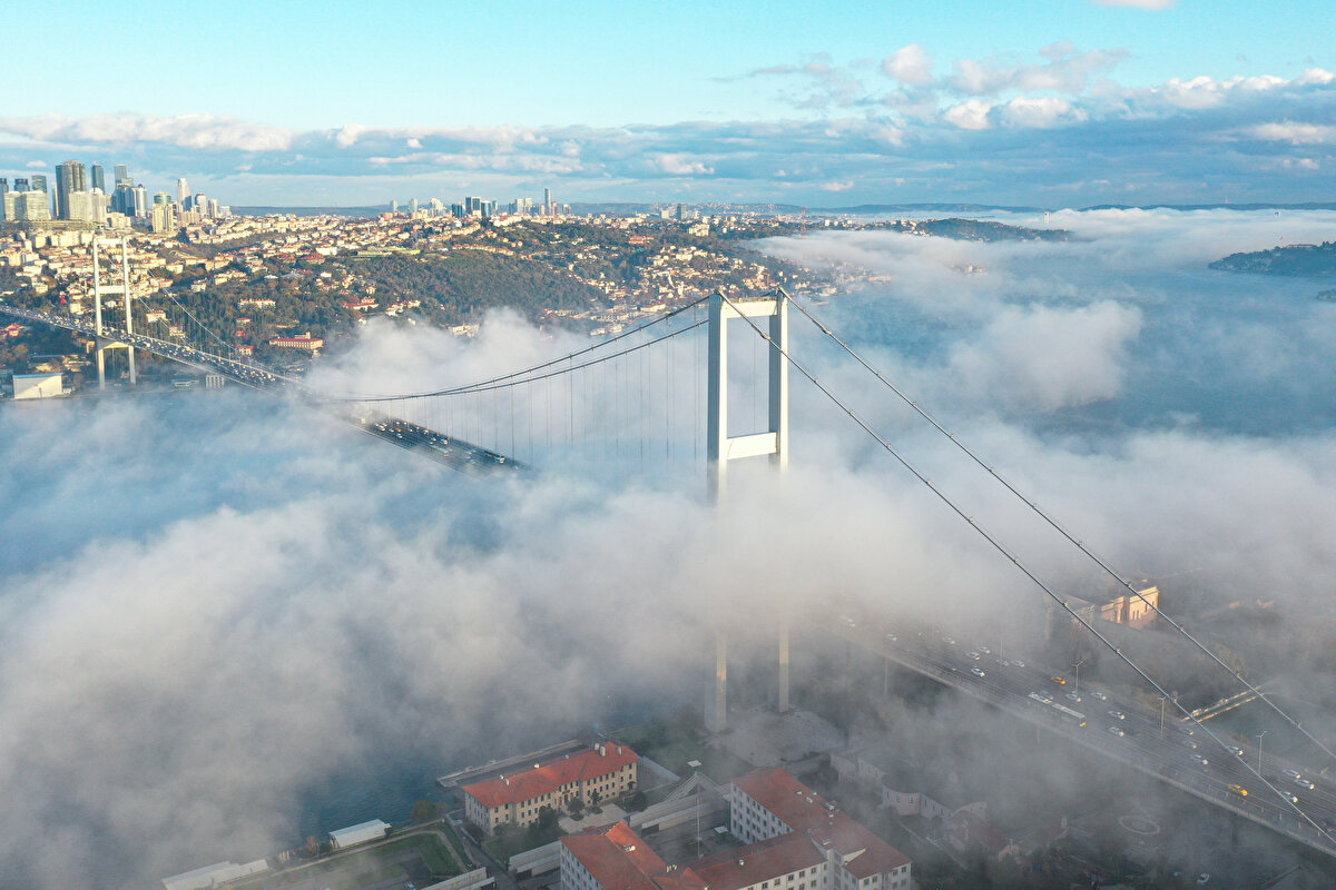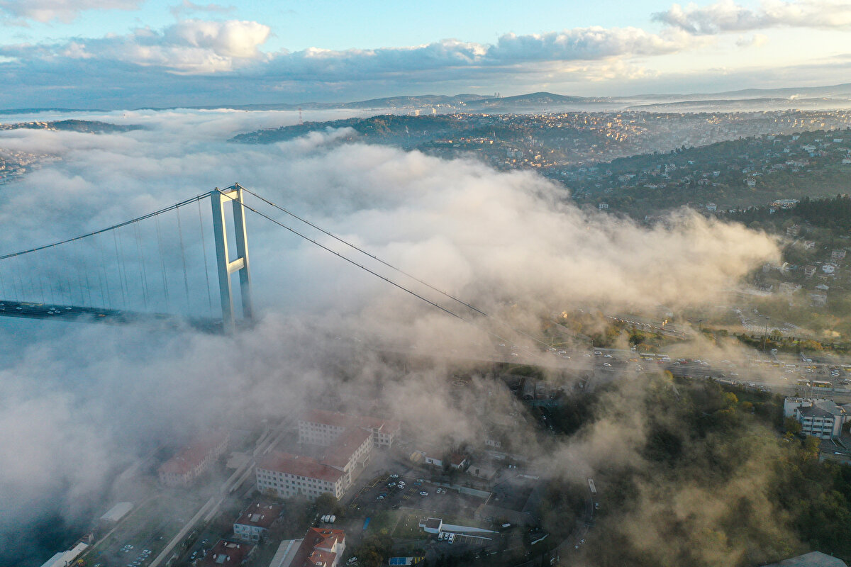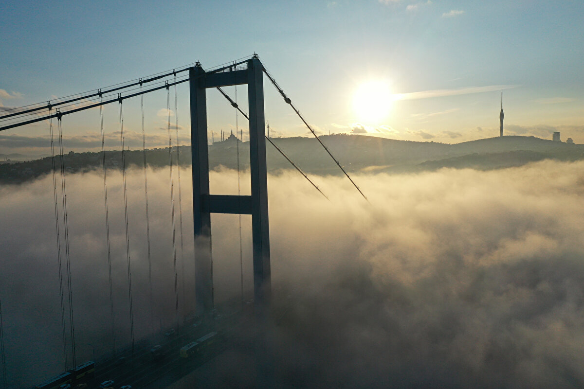 İstanbul'da sabah saatlerinde oluşan sis, 15 Temmuz Şehitler Köprüsü ve çevresinde etkili oldu.