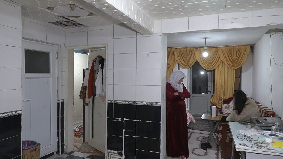 Betonunun dökülmesiyle midye kabukları ve çürüyen demirler ortaya çıktı. Dairede yaşayanlar endişeye kapılırken Kara, "Sabah saatiydi. Mutfağa geldim çay yapacaktım kendime, bir ses geldi. Sanki bina yıkıldı. Yere düştüm, baktım tavan komple yıkıldı. Ben burada 16 senedir oturuyorum. Diğer evlerin sahipleri burada değil, herkes kiracı. Ev sahipleri yurtdışında, kimse sahip çıkmıyor. Her an başıma, çocuklarımın başına bir şey gelir diye korkuyorum. Muhtarı aradım. İki adam geldi belediyeden, içeri dahi girmediler. 'Bir sıvacı çağır, sıvasın. Tamam bitti.' deyip gittiler, ilgilenmediler. Bu işlerde yetkili olanlar bizi görsün, bizi duysun, biz burada canız. Üç kızımla burada yaşıyorum. Ben 'Her an tavan düşer, neresi başıma gelir?' diye korkuyorum. İki ayrı odamız var, çaresizim. Ben zor durumdayım. Çarem olsa ben zaten çıkar giderdim. Ben buraya nasıl sıvacı getireyim. Komple yıkılmış tavan. Nasıl üstünü kapatayım. Sabahtan beri ben kendime gelemedim. Bir parça taş geldi ayağımı yaraladı." dedi.