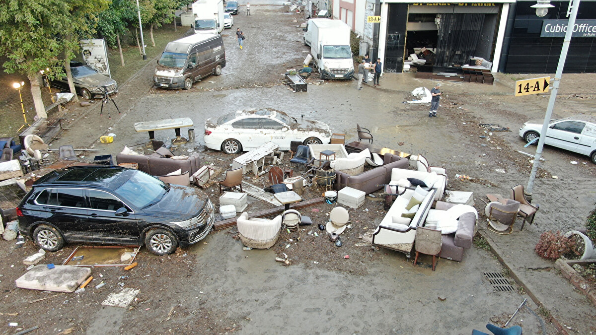 İstanbul'daki sel felaketinin ardından mobilyacılar sitesindeki hasar havadan görüntülendi