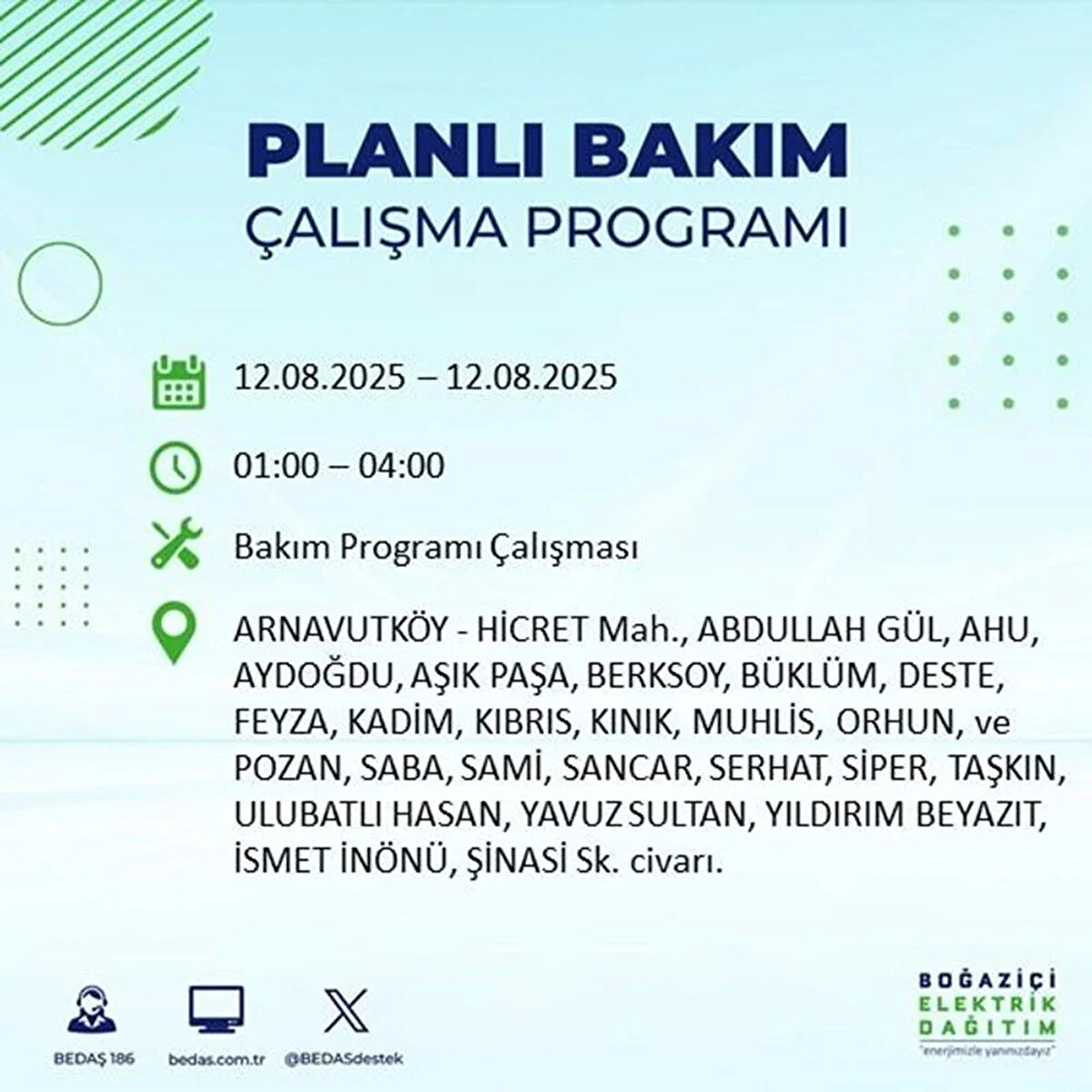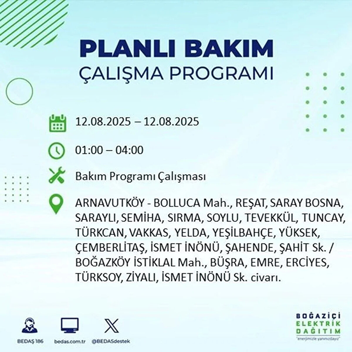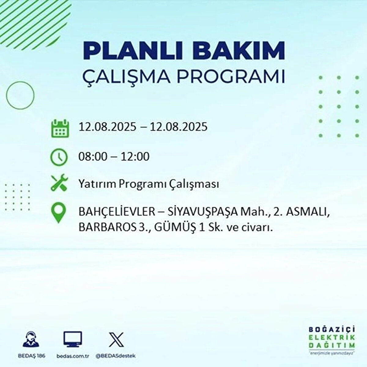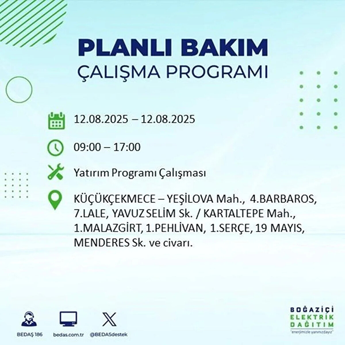 İstanbul elektrik kesintisi: BEDAŞ duyurdu... İstanbul'da 23 ilçede yarın (12 Ağustos 2025) elektrik kesintisi yaşanacak
