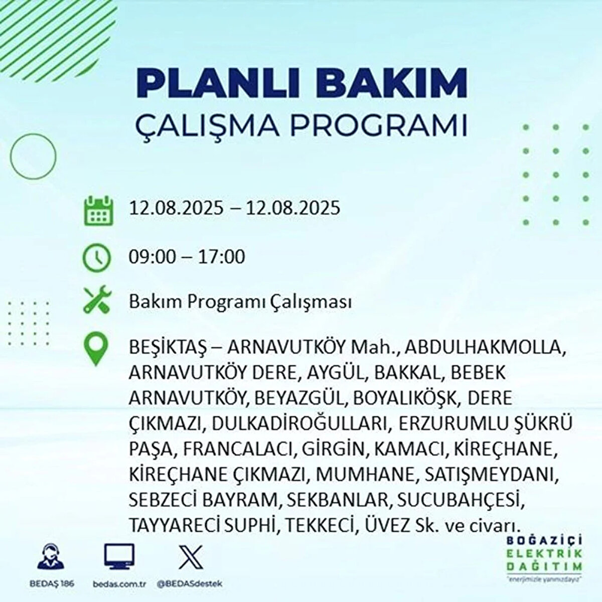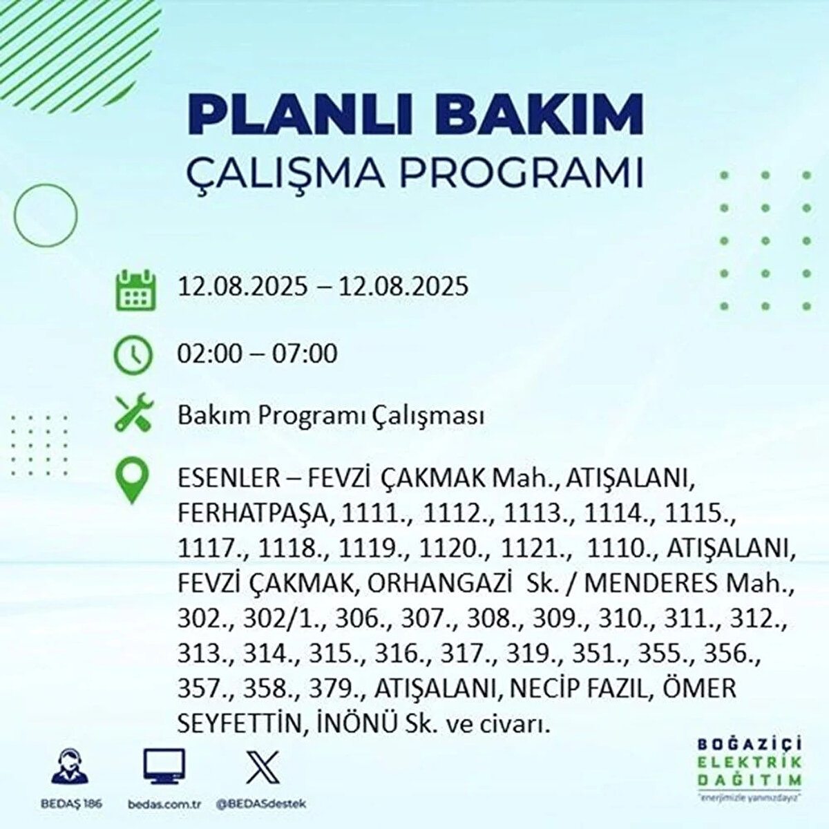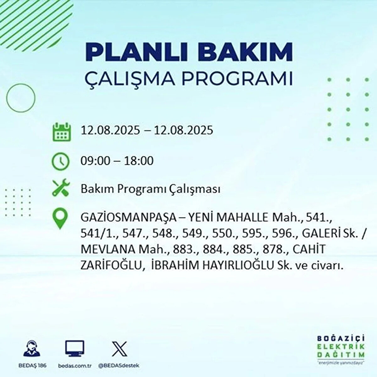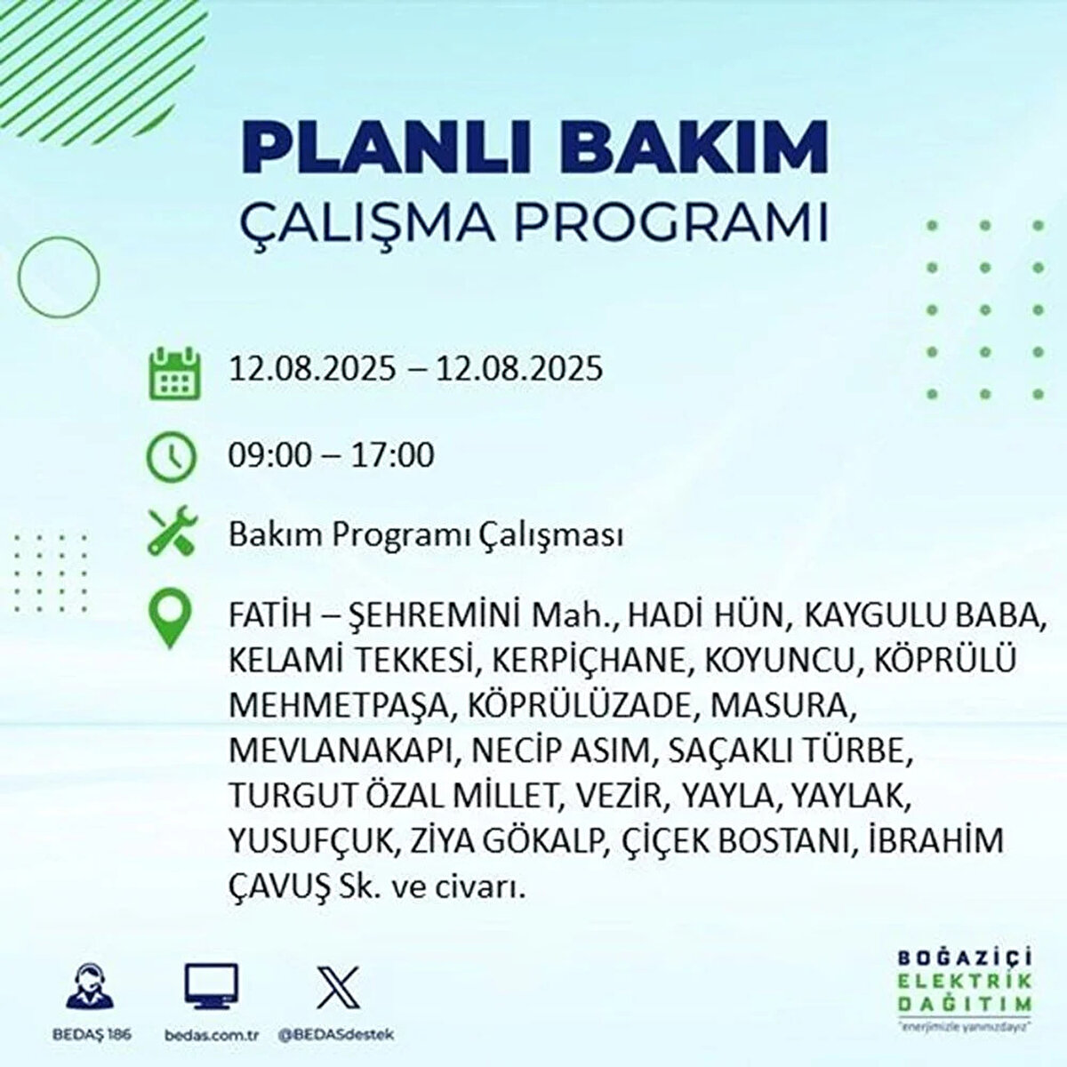 İstanbul elektrik kesintisi: BEDAŞ duyurdu... İstanbul'da 23 ilçede yarın (12 Ağustos 2025) elektrik kesintisi yaşanacak