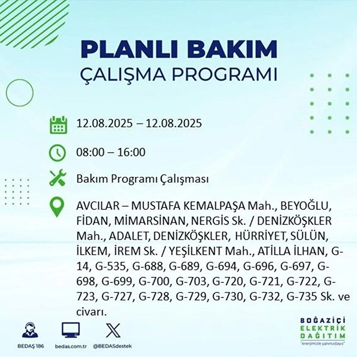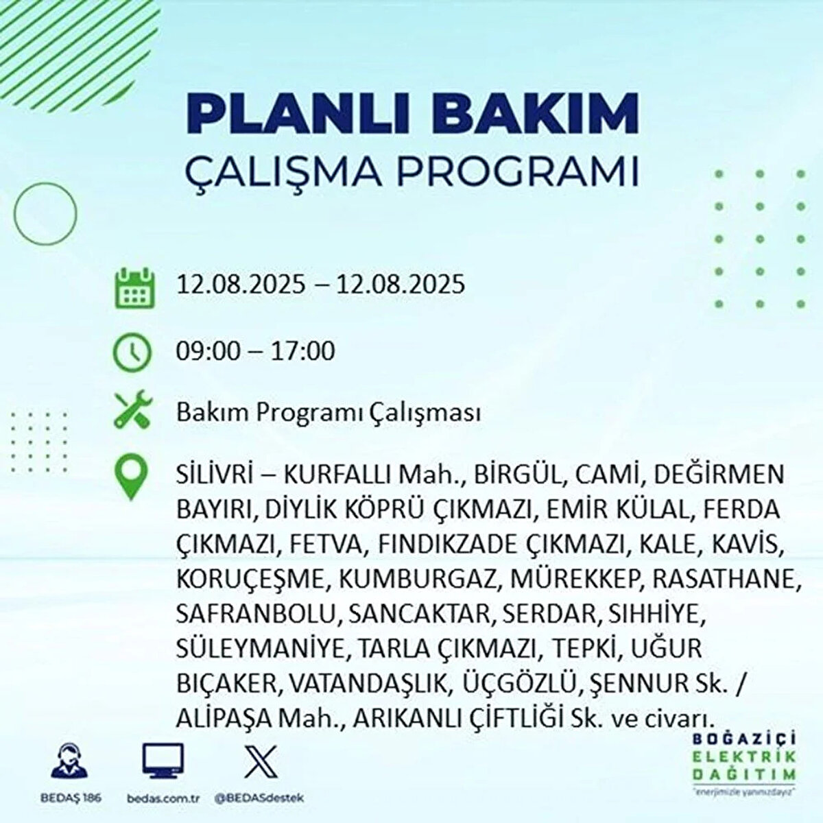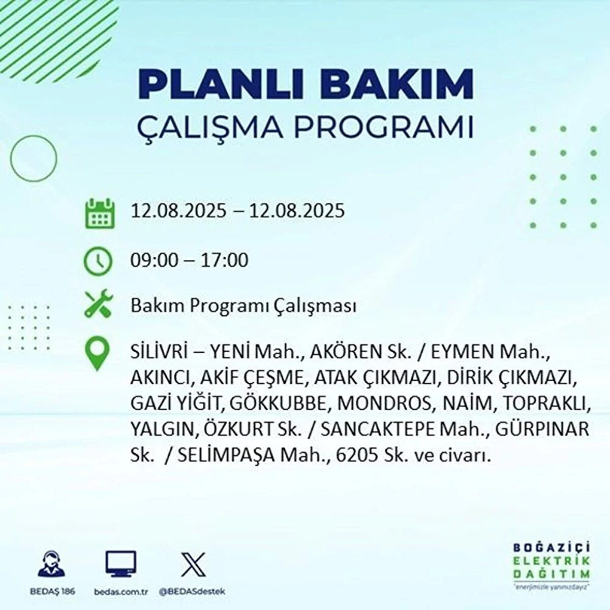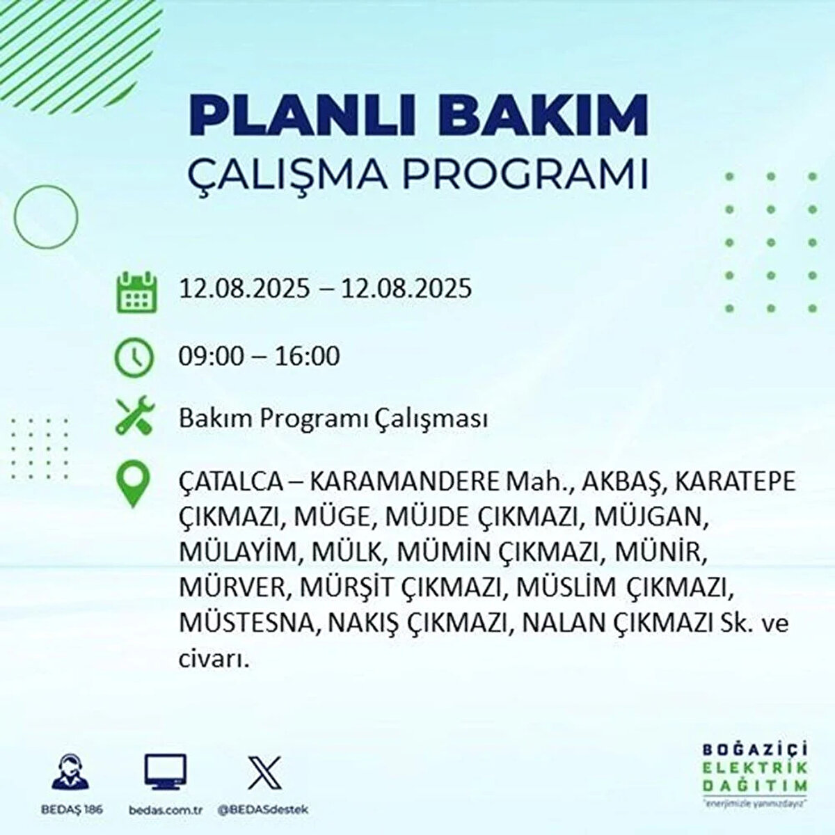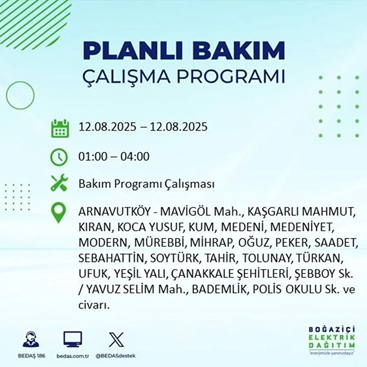 İstanbul elektrik kesintisi: BEDAŞ duyurdu... İstanbul'da 23 ilçede yarın (12 Ağustos 2025) elektrik kesintisi yaşanacak