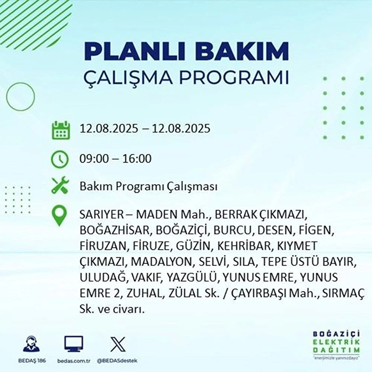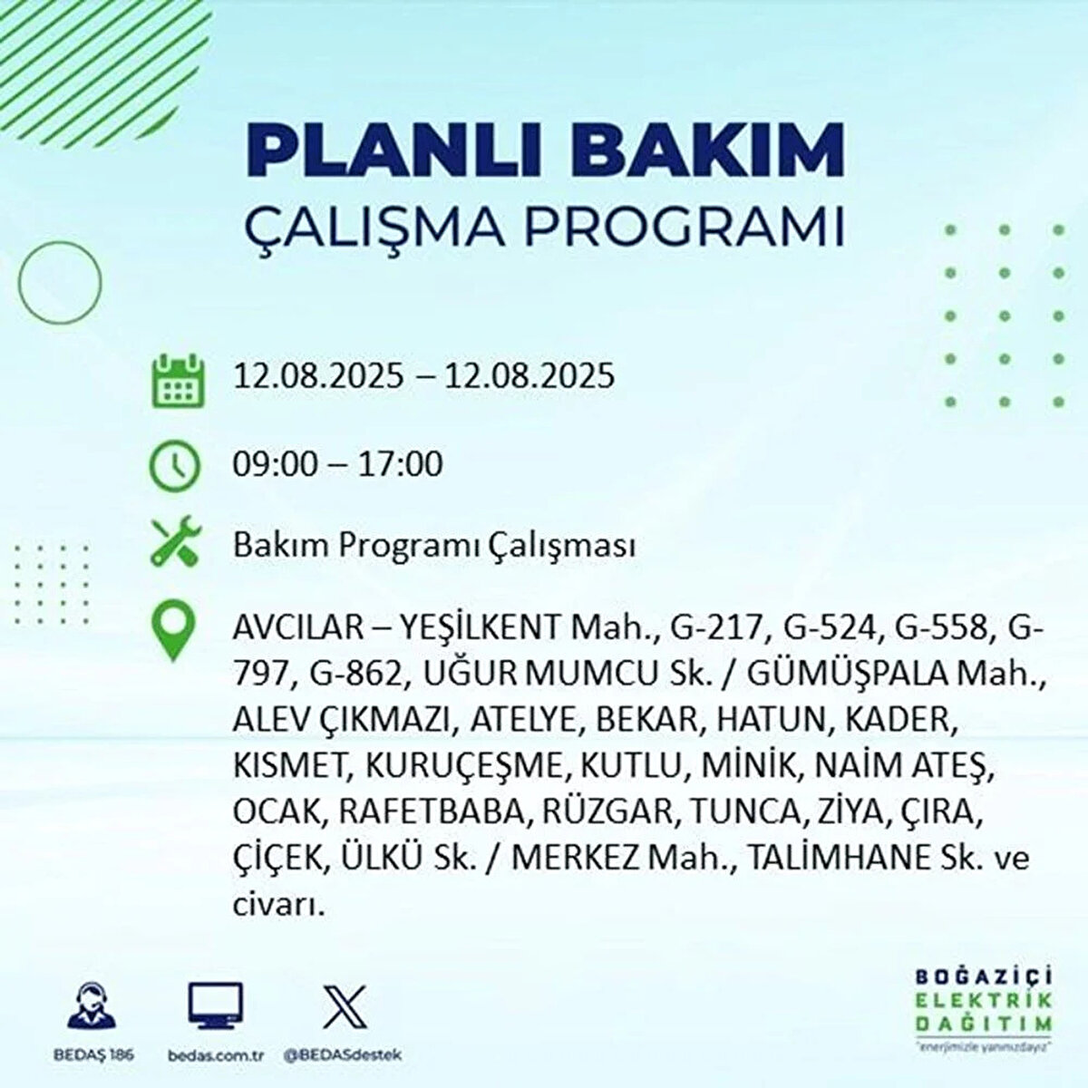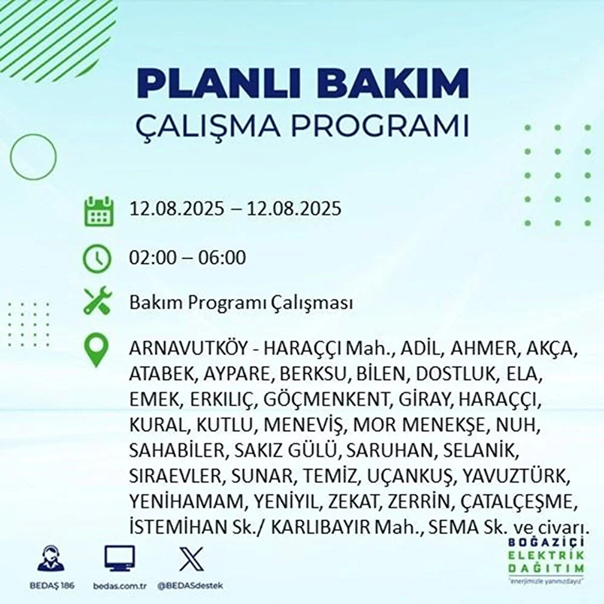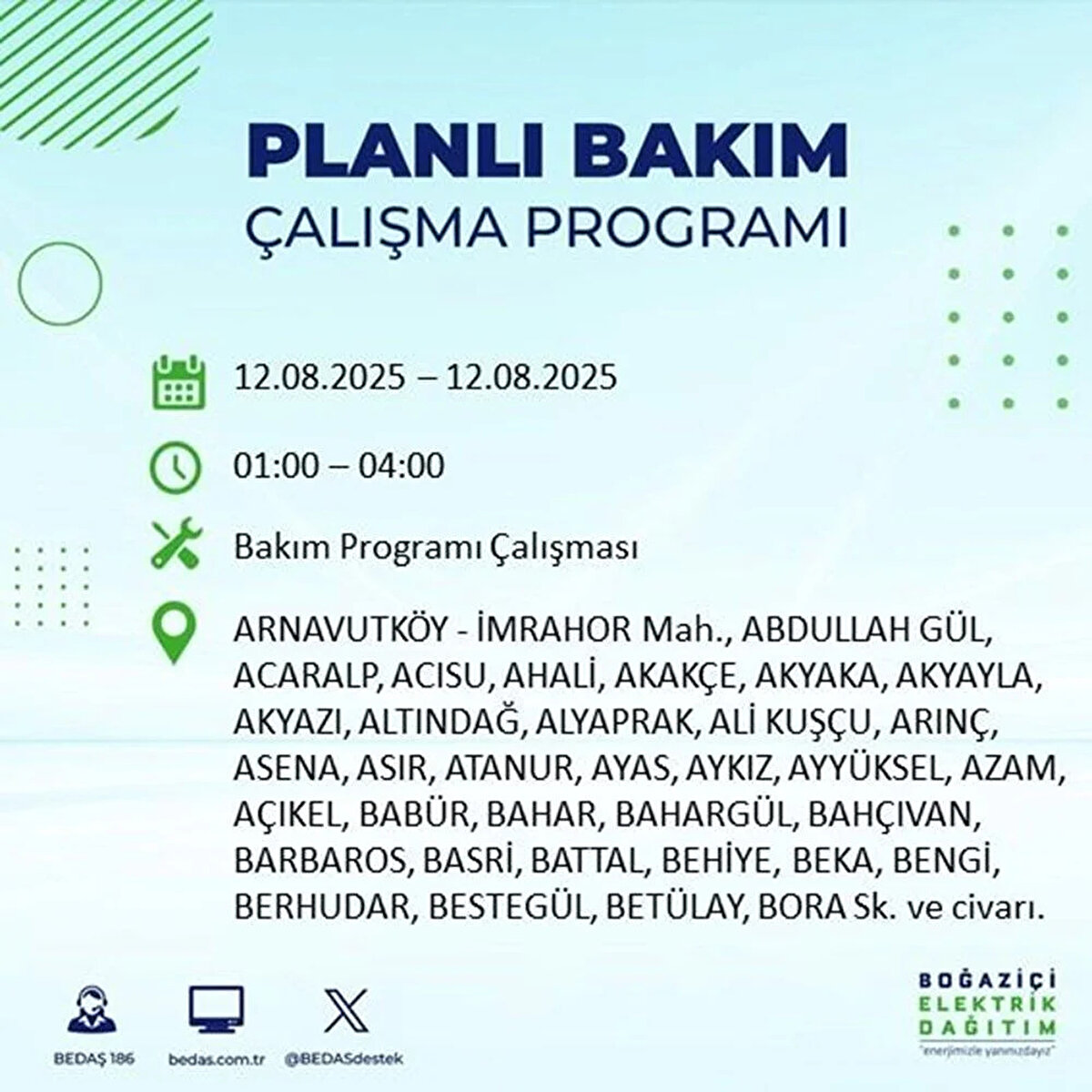 İstanbul elektrik kesintisi: BEDAŞ duyurdu... İstanbul'da 23 ilçede yarın (12 Ağustos 2025) elektrik kesintisi yaşanacak