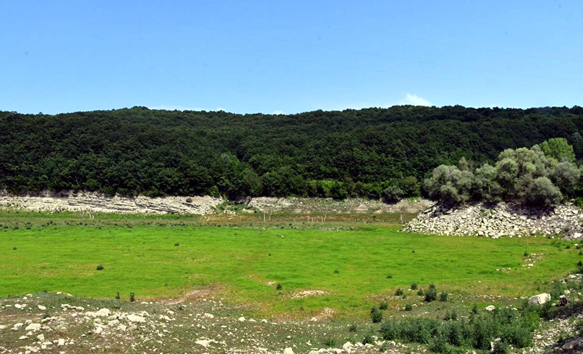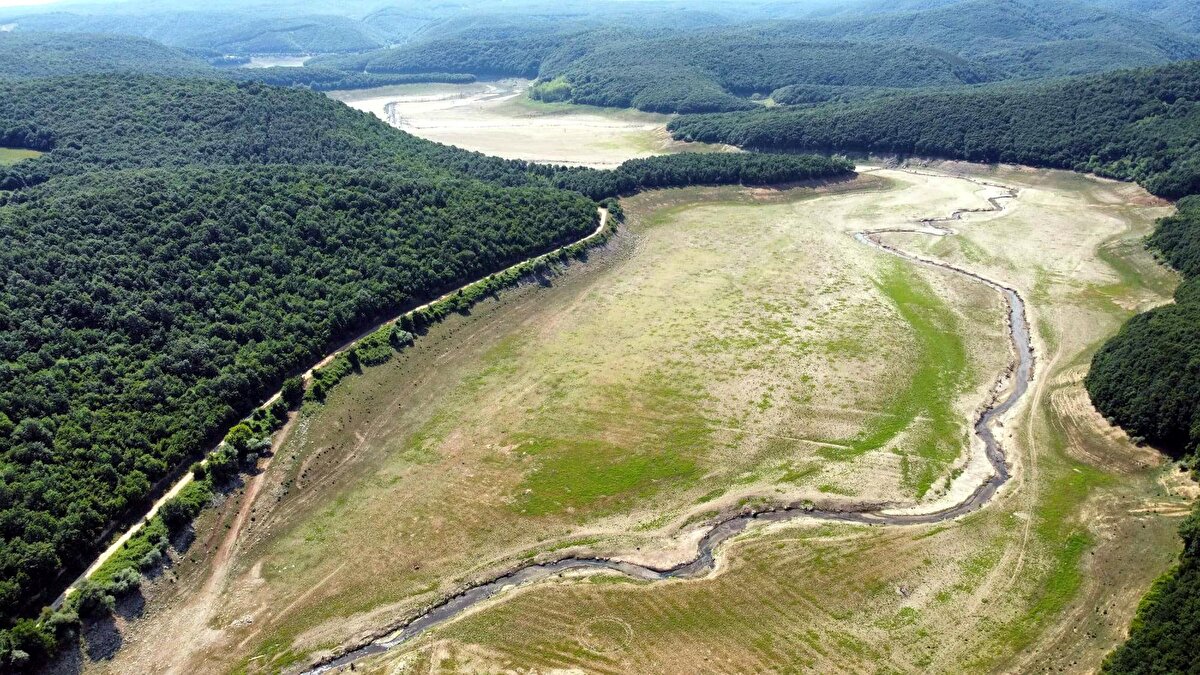 Trakya'dan İstanbul'un suyunu karşılayan üç barajdaki doluluk oranı kuraklık nedeniyle büyük ölçüde düştü. Kuruyan Kazandere Barajı'nın yüzeyi otlarla kaplanıp, yeşil renge büründü.
