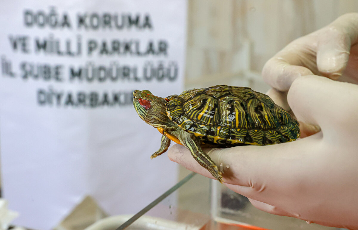 Uzak Doğu'dan ithal edilen ve "istilacı" olarak nitelendirilen tür olduğu tespit edilen su kaplumbağalarının Dicle Yaban Hayvanı Kurtarma ve Rehabilitasyon Merkezinde sağlık kontrolleri ve gerekli bakımları yapıldı.