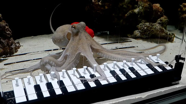 Daha önce eşi benzeri görülmedi! Evcil ahtapot piyanist oldu