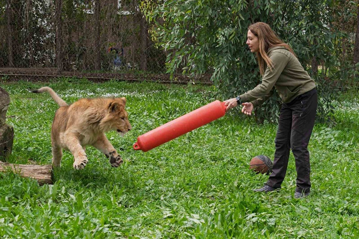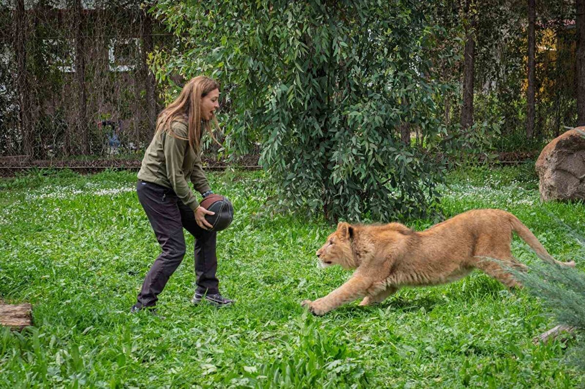 Yavru aslan için özel menüDoğal Yaşam Parkı'na getirildiğinde hiç et ile beslenmediği belirlenen yavru aslan için özel bir beslenme programı uygulanıyor. Sabah ve öğlen kırmızı et, kuru mama ve bir su bardağı tavuk suyu ile beslenen aslan, akşam da haşlanmış tavukgöğsü ve kuru mama tüketiyor. İnsanlarla yakın ilişki kurduğu belirlenen aslan gün içinde basketbol topu, halat topu ve şamandıra gibi oyuncaklarla oynayarak günlerini keyifle geçiriyor.
