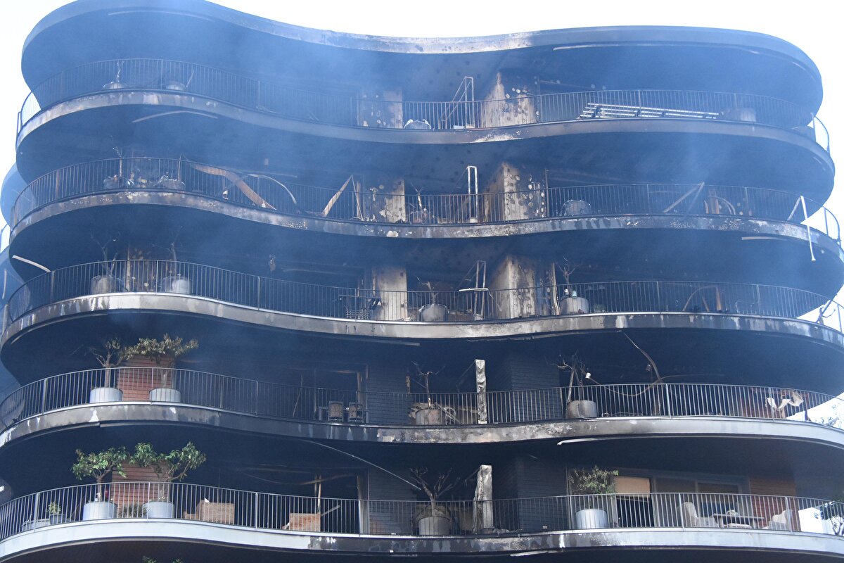 İzmir'in Narlıdere ilçesindeki lüks bir sitede çıkan, ekiplerin karadan ve havadan müdahalesiyle 8 saatte kontrol altına alınan yangındaki hasar, gün ağarınca ortaya çıktı. Soğutma çalışmaları sürerken, bloktaki dairelerin kullanılamaz hale geldiği görüldü.