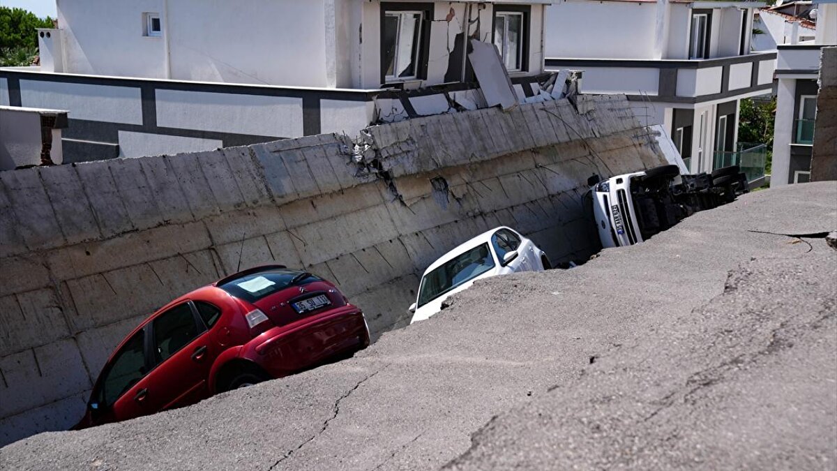 Çukuraltı Mahallesi 2189 Sokak`taki bir istinat duvarının çökmesi sonucu toplam 6 daireli 3 müstakil bina ile park halindeki 3 araçta hasar meydana geldi.