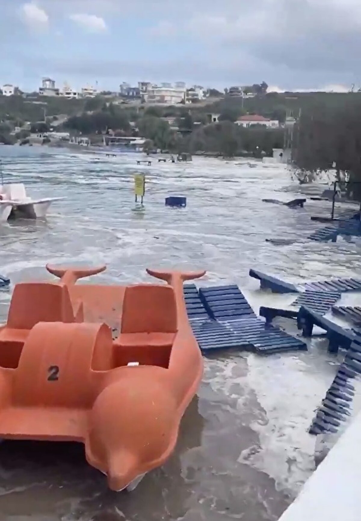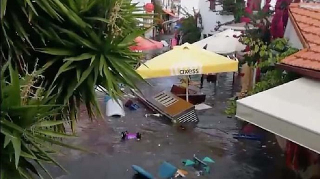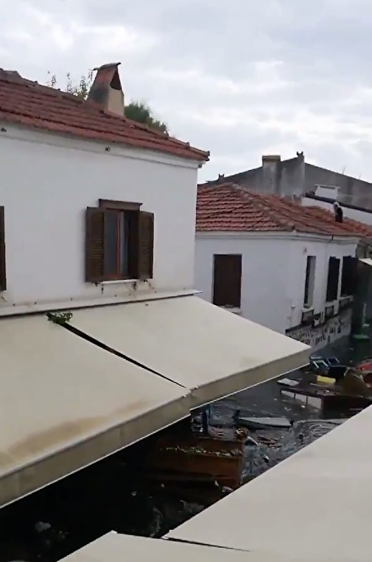 İzmir'in Seferihisar ilçesinde depremin etkisiyle deniz seviyesi yükselmesi sonucu bazı cadde ve sokaklar su altında kaldı.