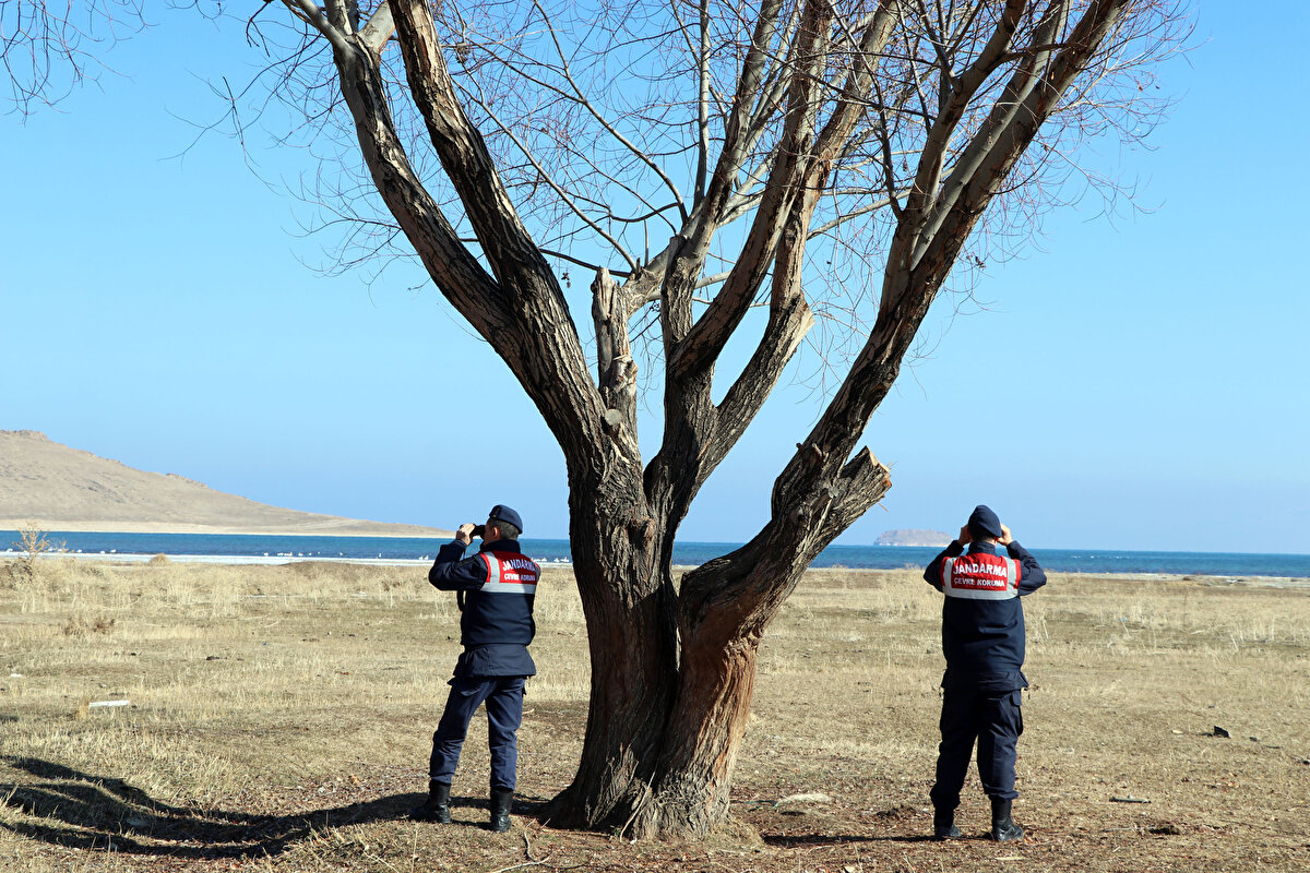 İl Jandarma Komutanlığı Çevre Doğa ve Hayvanları Koruma Timi, Jandarma Asayiş Timleri, Gevaş İlçe Jandarma Komutanlığı’na bağlı Yoldöndü Jandarma Karakol Komutanlığı ile Van Doğa Koruma ve Milli Parklar Müdürlüğü ekipleri, ötücü kuğuların konakladıkları Gevaş ilçesine bağlı Göründü Mahallesi'ndeki sazlık alanda avcılara karşı sıkı denetimlerde bulunuyor.