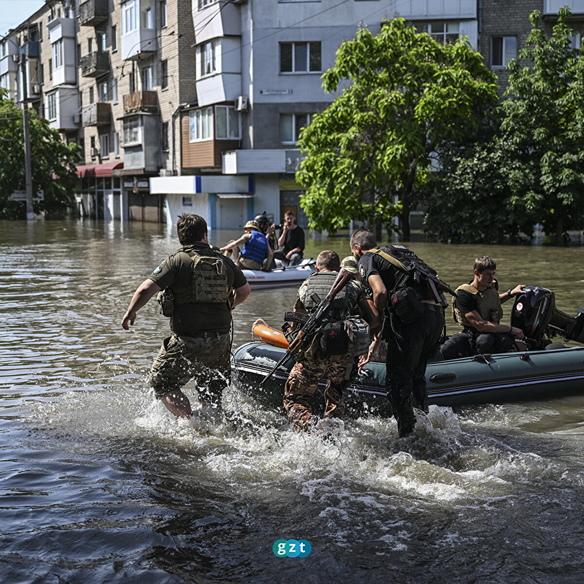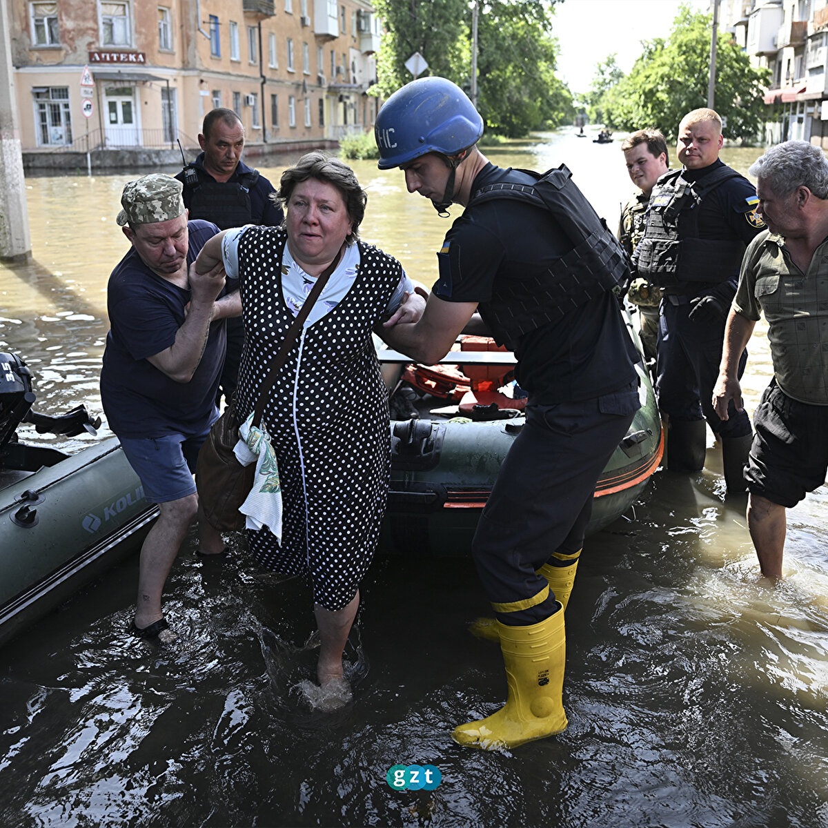 Ukrayna'da Kahovka Barajı ve Hidroelektrik Santrali'nin (HES) vurulması sonucu Herson bölgesinde evler su altında kaldı. Ekipler, bölgeden tahliye çalışmaları yürüttü.