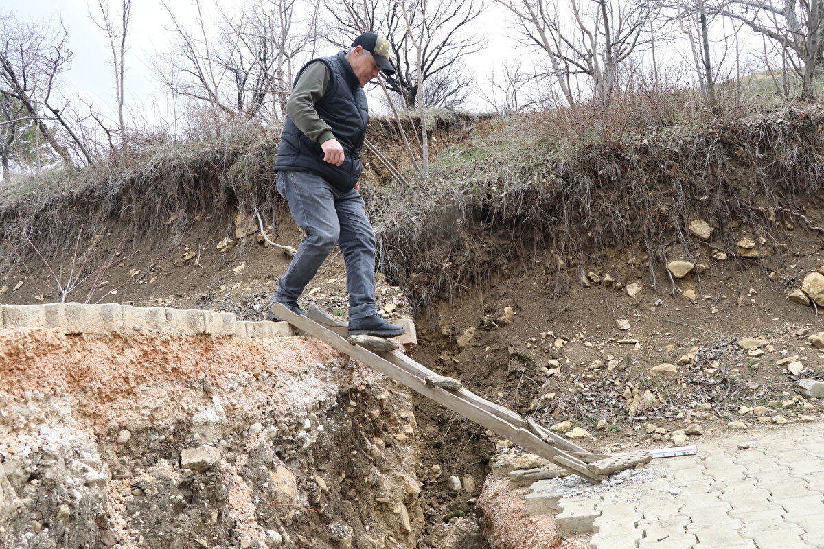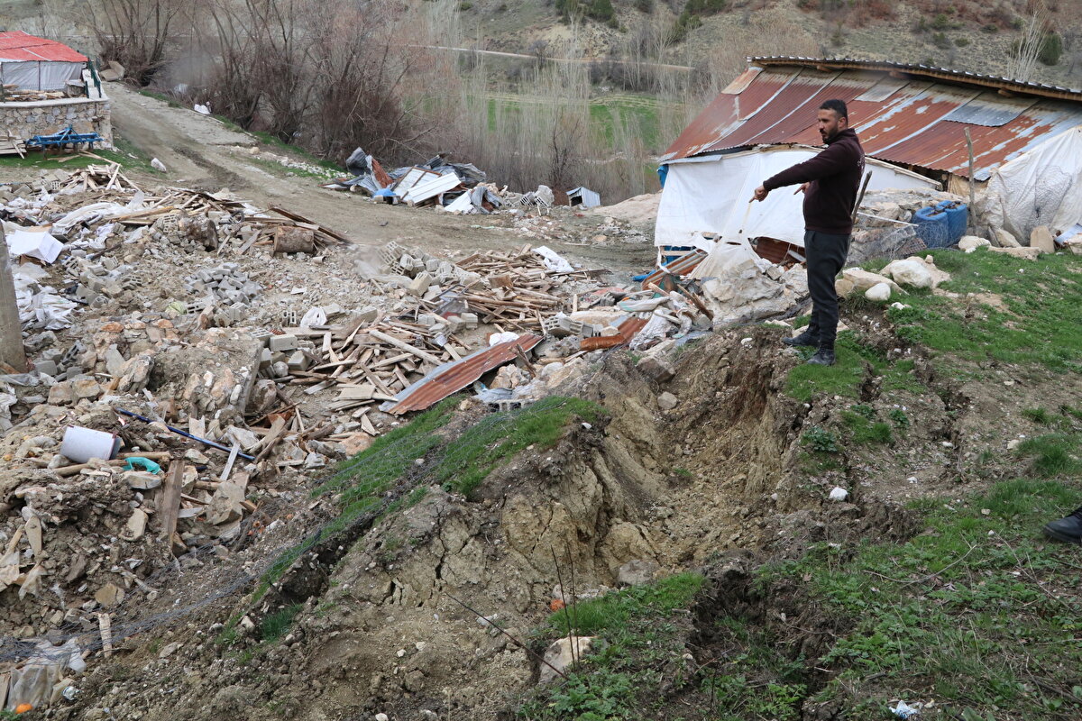 Mahallede 3 evin dışında kalanların tamamen yıkıldığını belirten Zor, "Yarıklar, yüzey kırıkları da depremden sonra oluştu. Bunların derinliği yaklaşık 3 metre. Mahallenin içinden geçiyor bunlar, mahallede bir yerden başka bir yere gitmek için merdiven dayamak gerekiyor. Ancak o şekilde geçebiliyoruz." dedi.