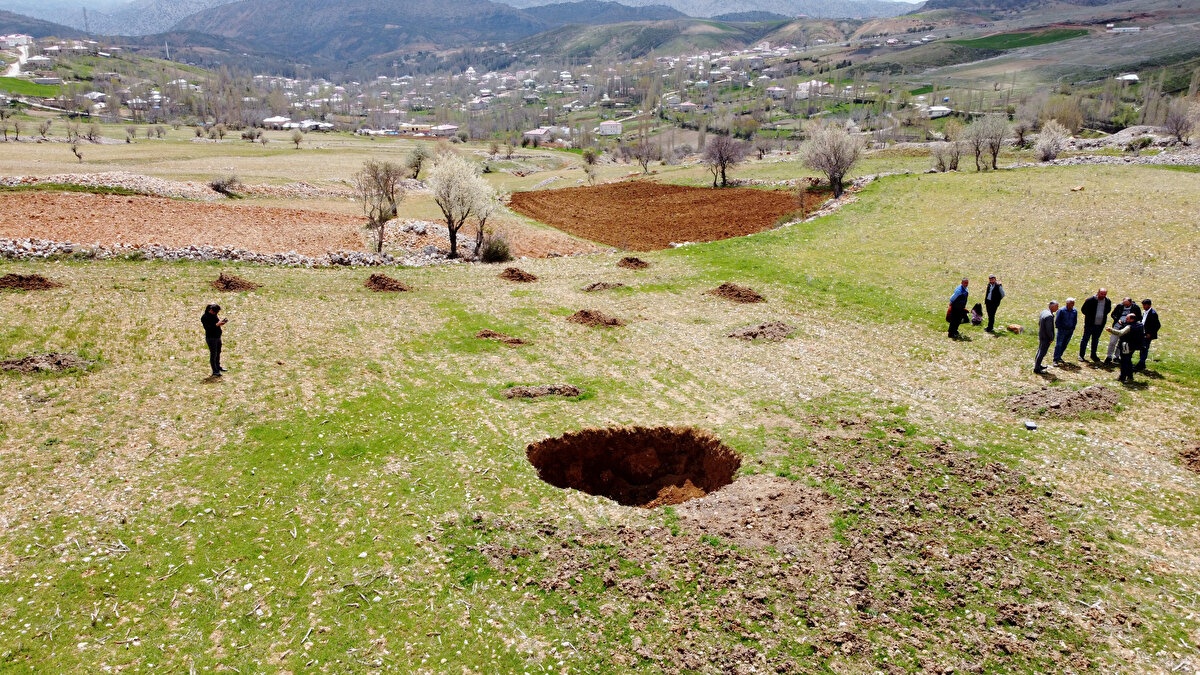 Kahramanmaraş'ta depremin ardından tarım arazisinde obruk oluştu
