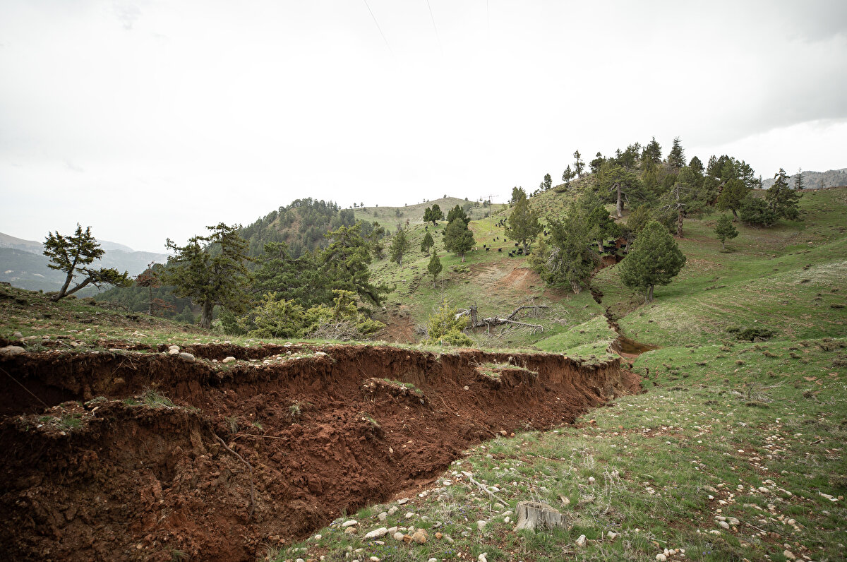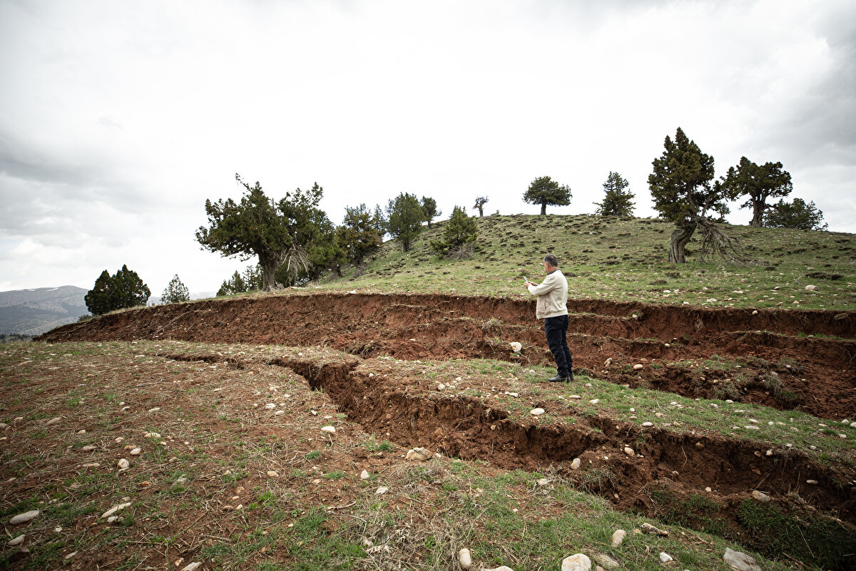 Kahramanmaraş merkezli 6 Şubat'taki depremlerde Elbistan ilçesinde oluşan yüzey kırıkları nedeniyle tarım arazileri birkaç parçaya bölündü. Yaklaşık 4 metreyi bulan çökme ve kaymalar dolayısıyla bazı ağaçlar köklerinden koptu, tarlalarda bölünmeler oluştu.