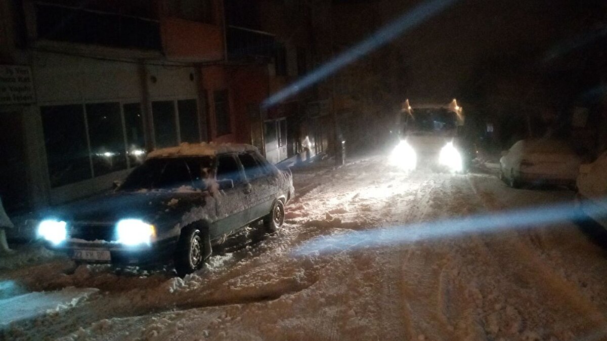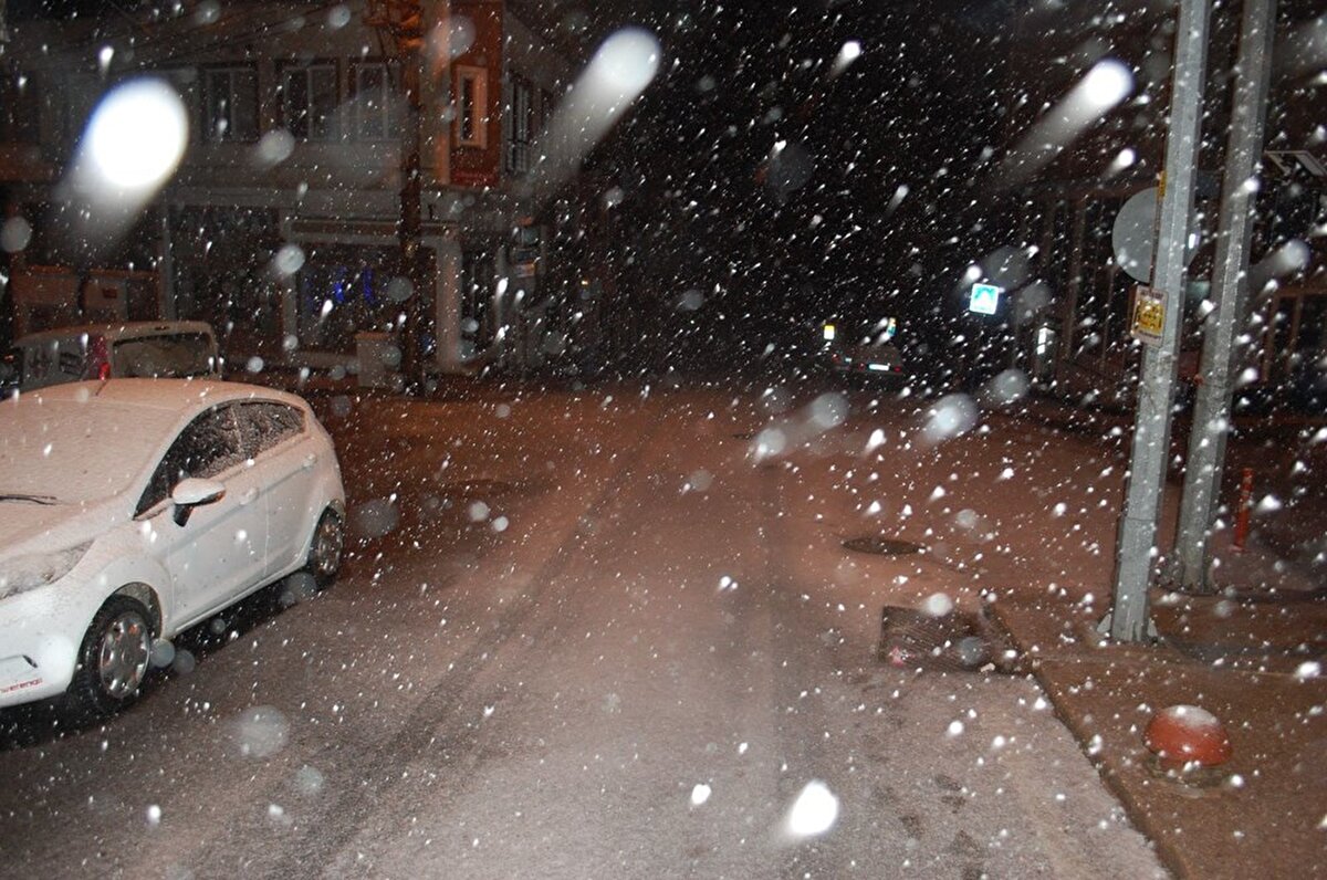 İlçe merkezinde gece saatlerinde başlayan ve yoğun şekilde etkisini sürdüren kar yağışı sabaha karşı 10 santimetreyi aştı.