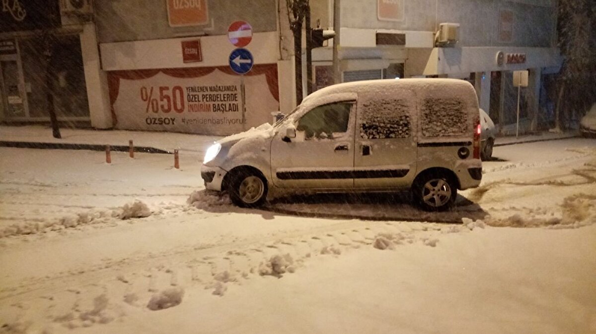Balkanlar'dan Trakya'ya giriş yapan kar yağışı Tekirdağ Malkara ilçesinde lapa lapa yoğun şekilde etkisini gösterdi. Kayak pistine dönen yolda sürücülere zor anlar yaşattı. 10 santimetreyi aşan karla kaplı zeminde yokuşu çıkamayan araçları iterek kurtarmaya çalıştılar.