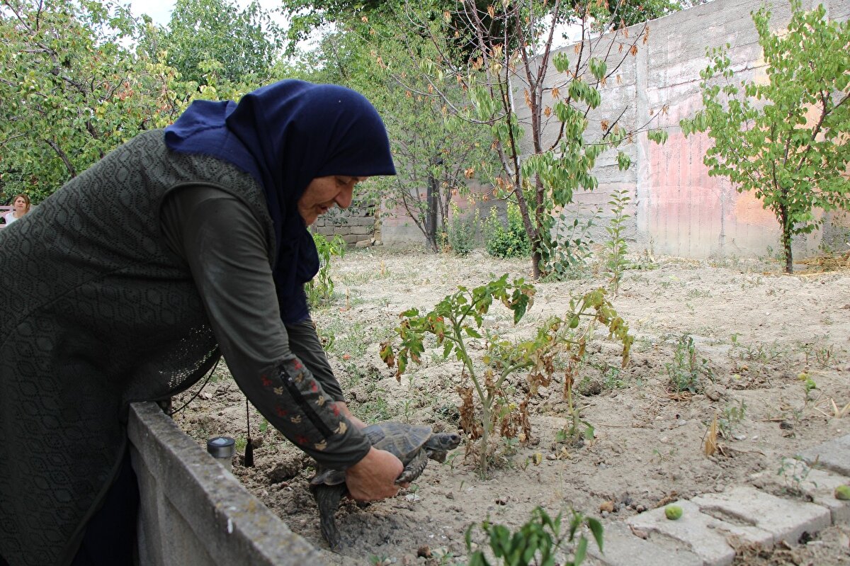 Kaplumbağaların ikisine bahçede, birine ise henüz küçük olduğu için evinde bakan evli ve 4 çocuk annesi Artut, "15 yıldır baktığım bir kaplumbağam vardı. Şimdi 3 tane oldu. Birini çocuklar getirdi. Diğerini ise kapıya bırakmışlar. Kıyamadım, eve aldım” dedi.