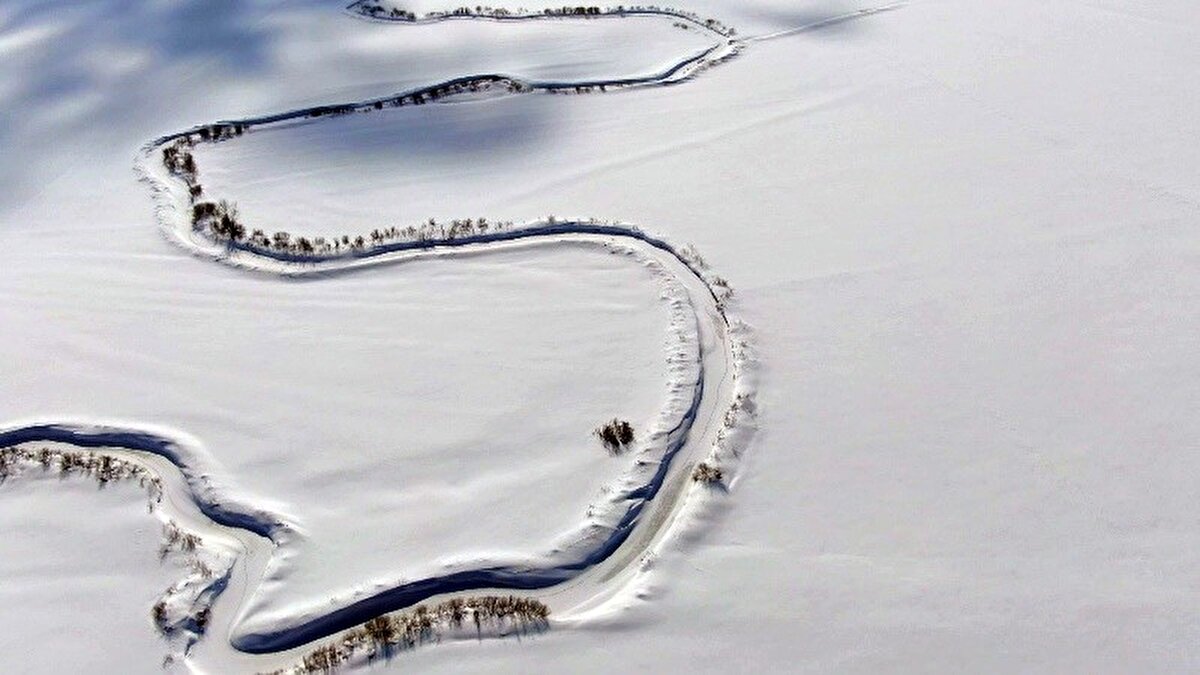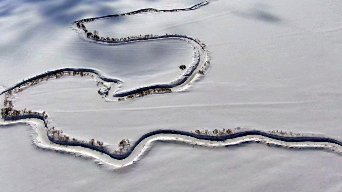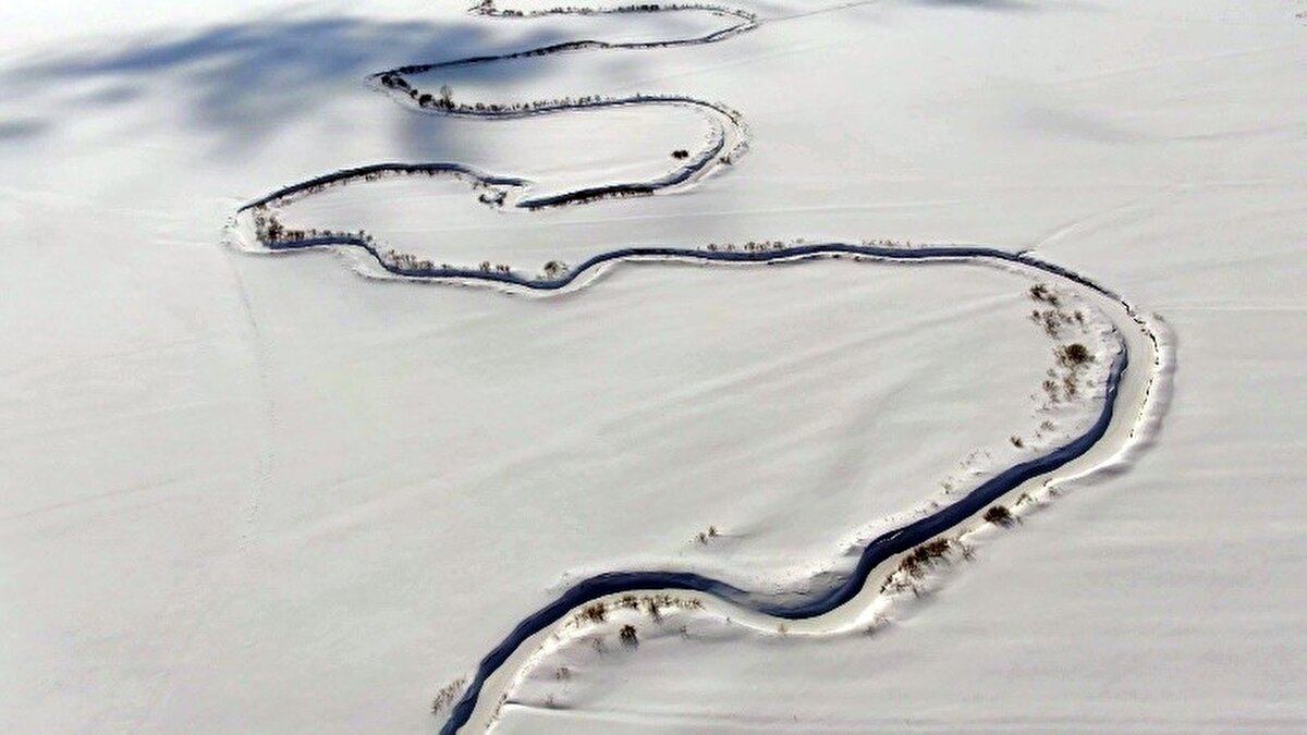 Mendereslerin kar altında kıvrılarak giden halinin karlı dağlarla birleşmesi havadan görüntülenmesi görenleri mest etti.