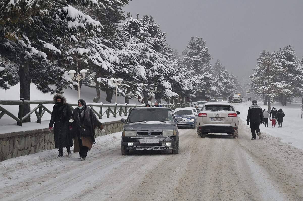 Anadolu Otoyolu ve D-100 kara yolunun Bolu Dağı kesiminde kar kalınlığı 30 santimetreye ulaştı.