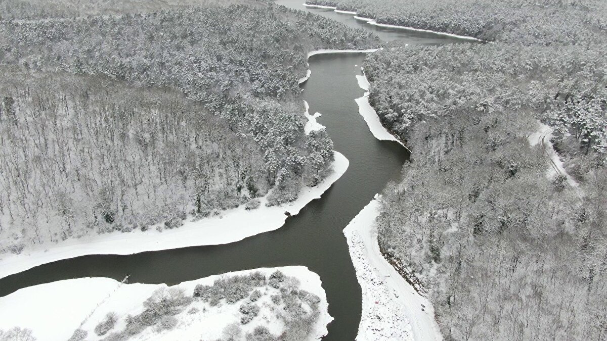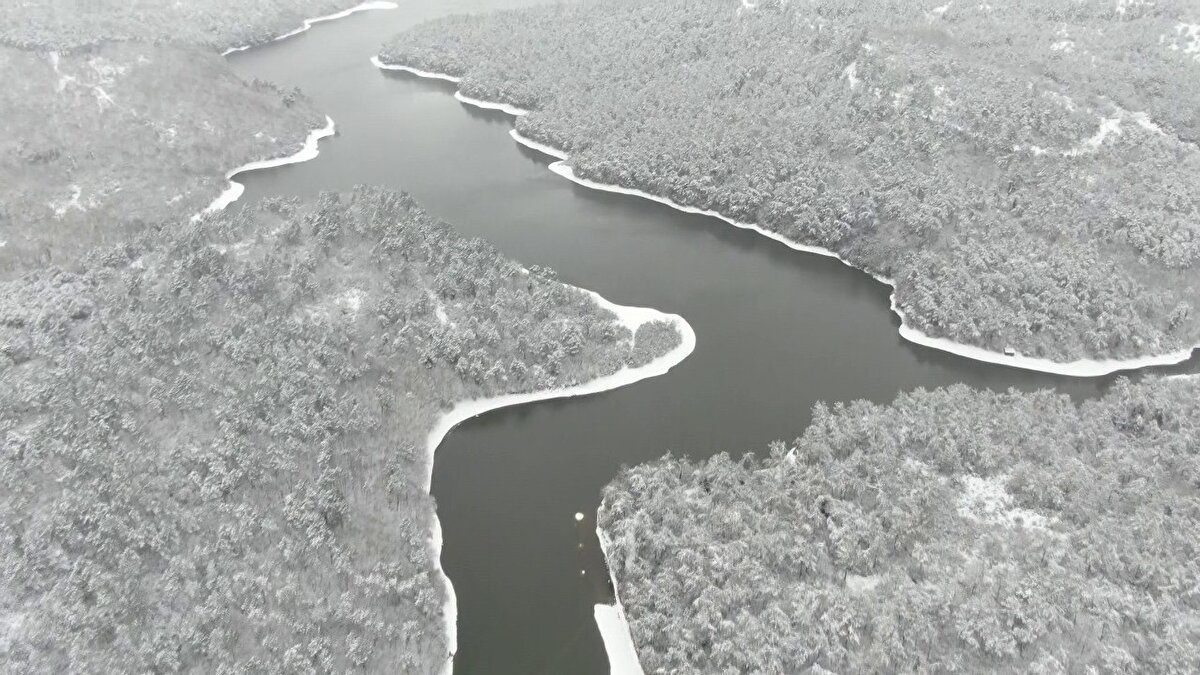 İstanbul'da etkisini gösteren yoğun kar yağışının ardından barajlardaki doluluk oranı yükselişe geçti. İstanbul barajlarında doluluk oranı yüzde 54.11'e yükseldi. Kar yağışıyla birlikte kartpostallık görüntülerin oluştuğu Elmalı barajı havadan görüntülendi.