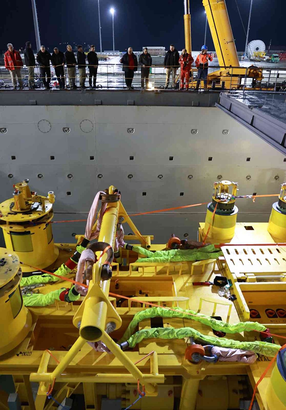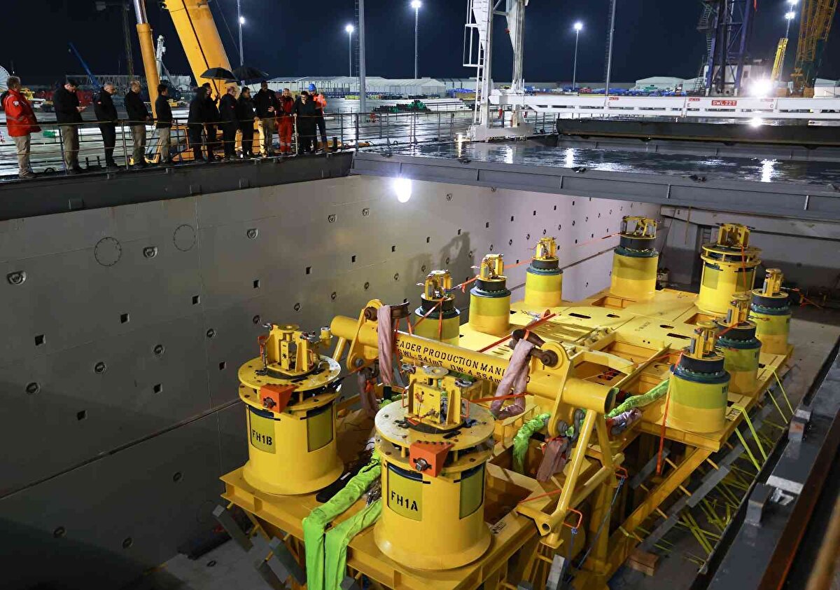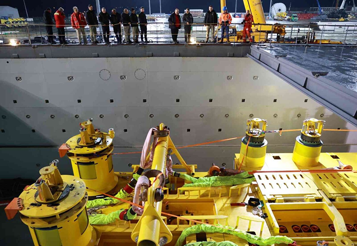 Dönmez, denizde 51 geminin bu operasyon için çalıştığına işaret ederek, "Denizde ve karada işler planlandığı gibi ilerliyor. Geçtiğimiz günlerde bir aşamayı daha geçtik ve çok kritik bir ekipman olan dağıtım haznesini ekiplerimiz başarıyla deniz tabanına indirdi. Cumhuriyetimizin 100'üncü yılında enerji bağımsızlığının en önemli adımlarından birini hizmete almak için gün sayıyoruz. Türkiye Yüzyılı, enerjinin de yüzyılı olacak. Bundan kimsenin şüphesi olmasın." ifadelerini kullandı.