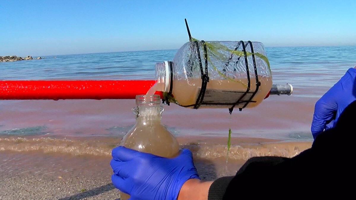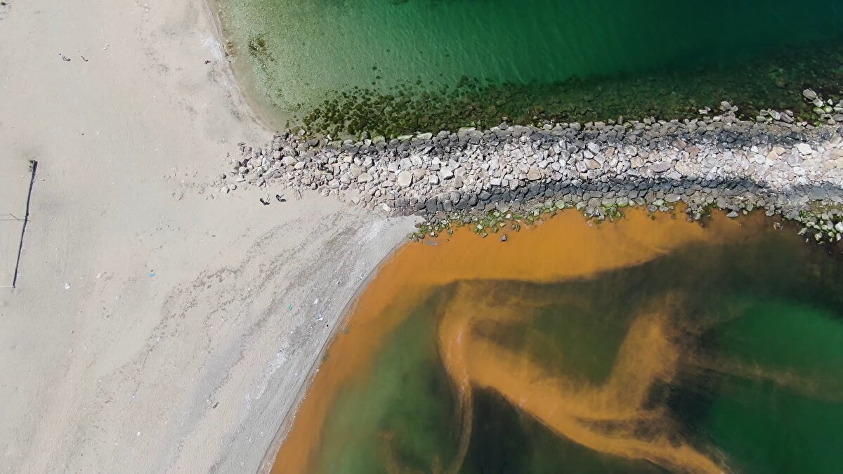 Değişimin nedeni alg patlaması olarak tahmin edilirken kesin neden incelemenin ardından netleşecek. Turuncu ve kızıla dönen deniz suyu havadan görüntülendi.
