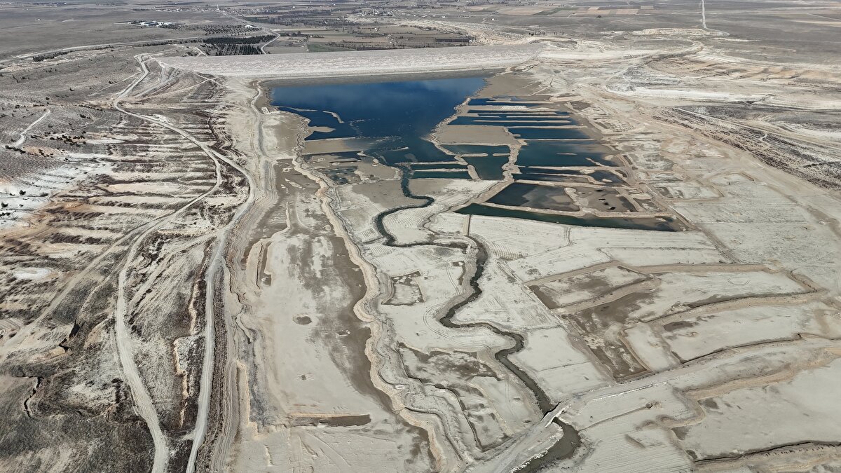 Karaman'da kuraklığın etkisiyle İbrala Barajı'ndaki su seviyesi büyük oranda düştü.