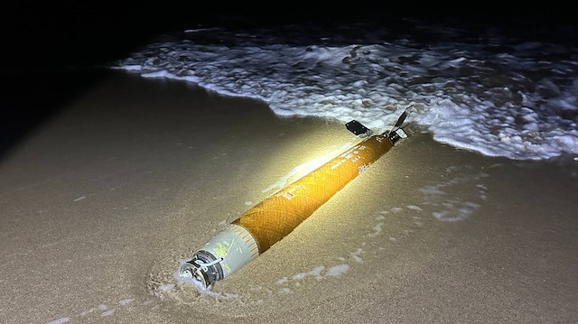 Sakarya'nın Karasu ilçesi sahilinde uçaksavar füzesi roket taşıma motoru bulundu.