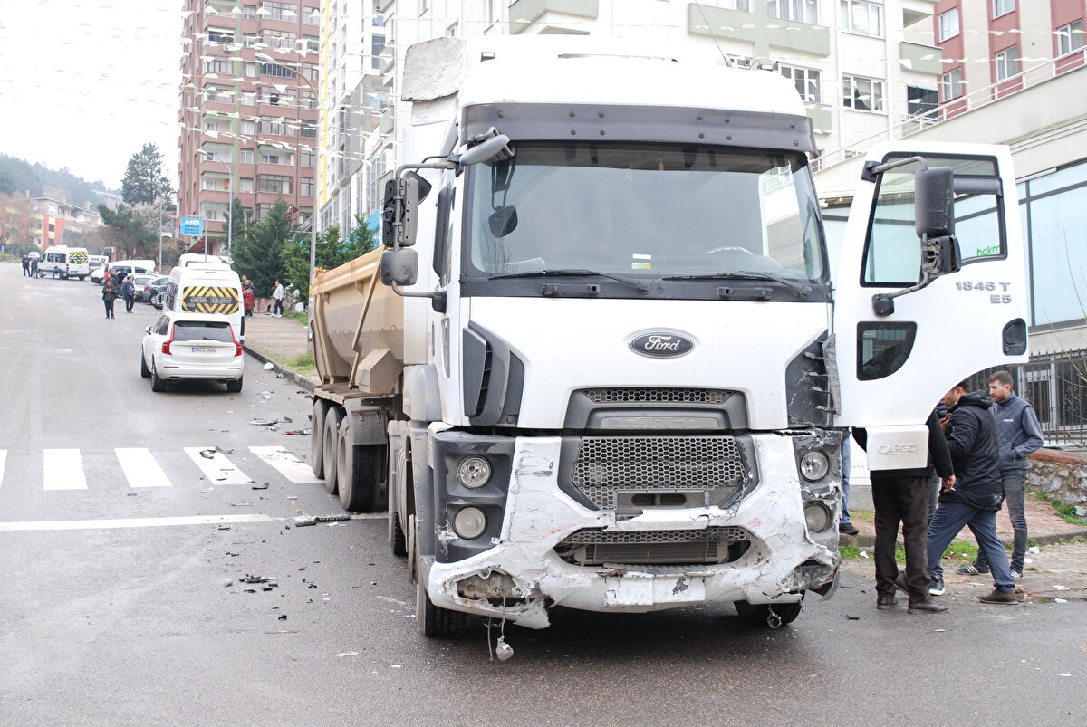 Yokuş yukarı çıkan 34 LFH 398 plakalı öğrenci servis minibüsüne çarpan kamyon, daha sonra durmayarak park halindeki 13 araca daha çarptı.