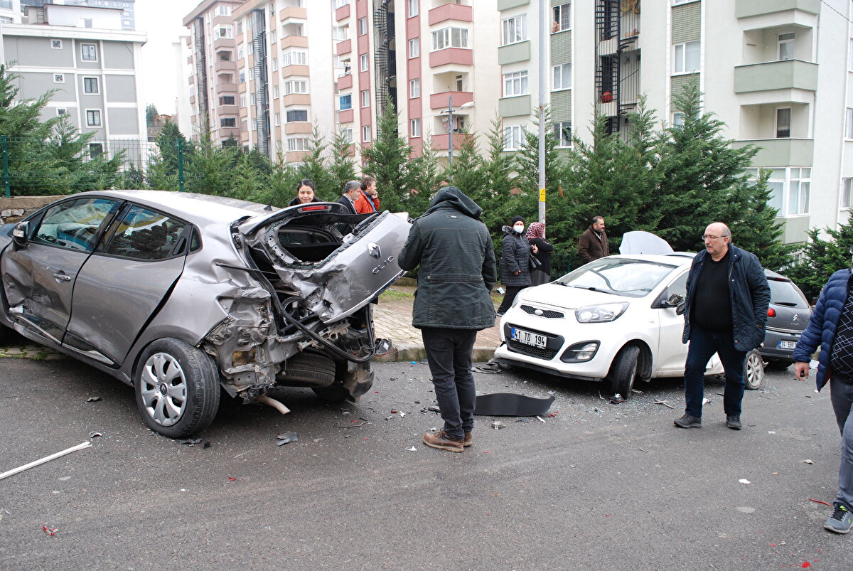 Kartal'da park halindeyken hareket eden hafriyat kamyonu 14 araca çarptı
