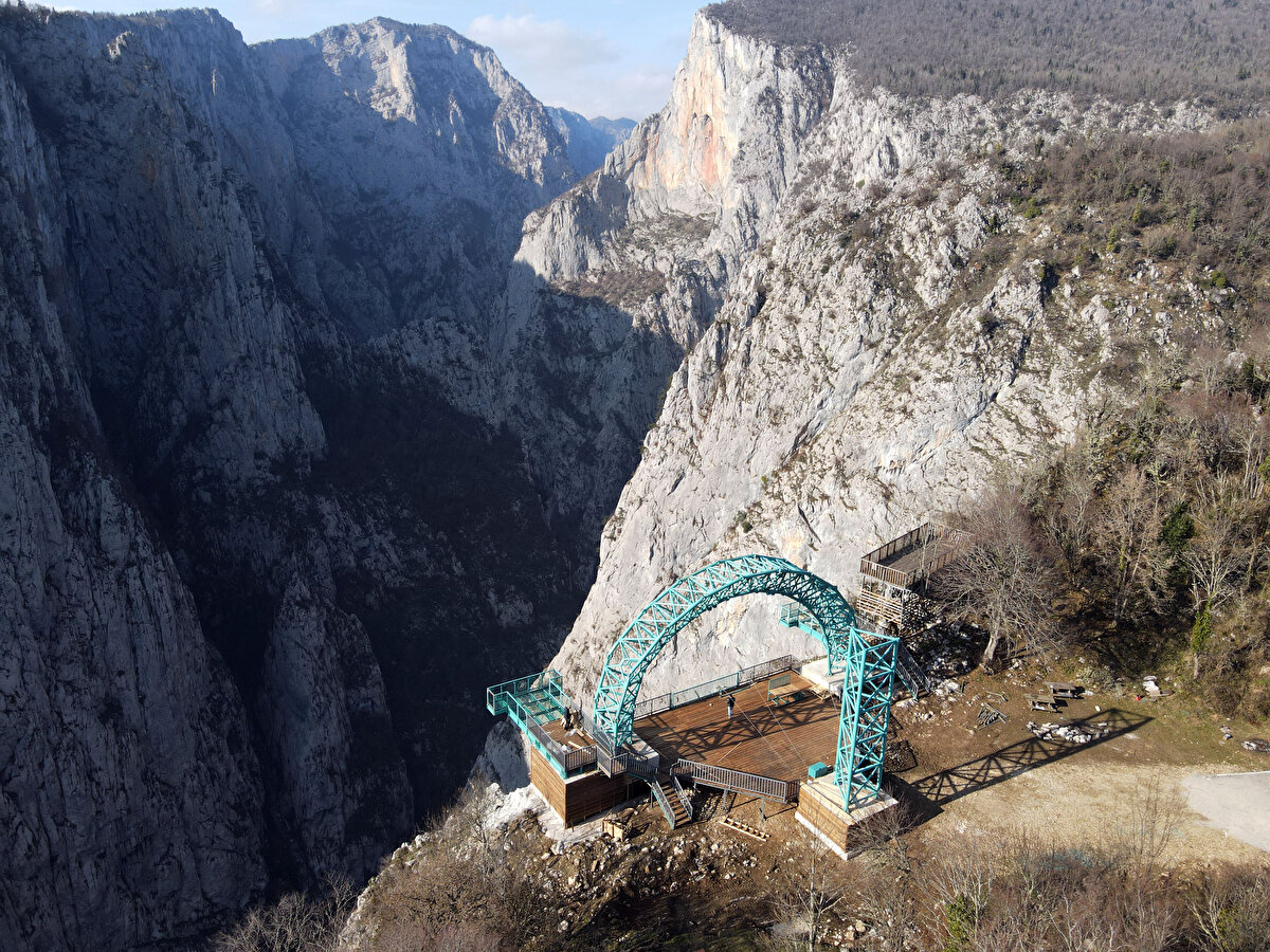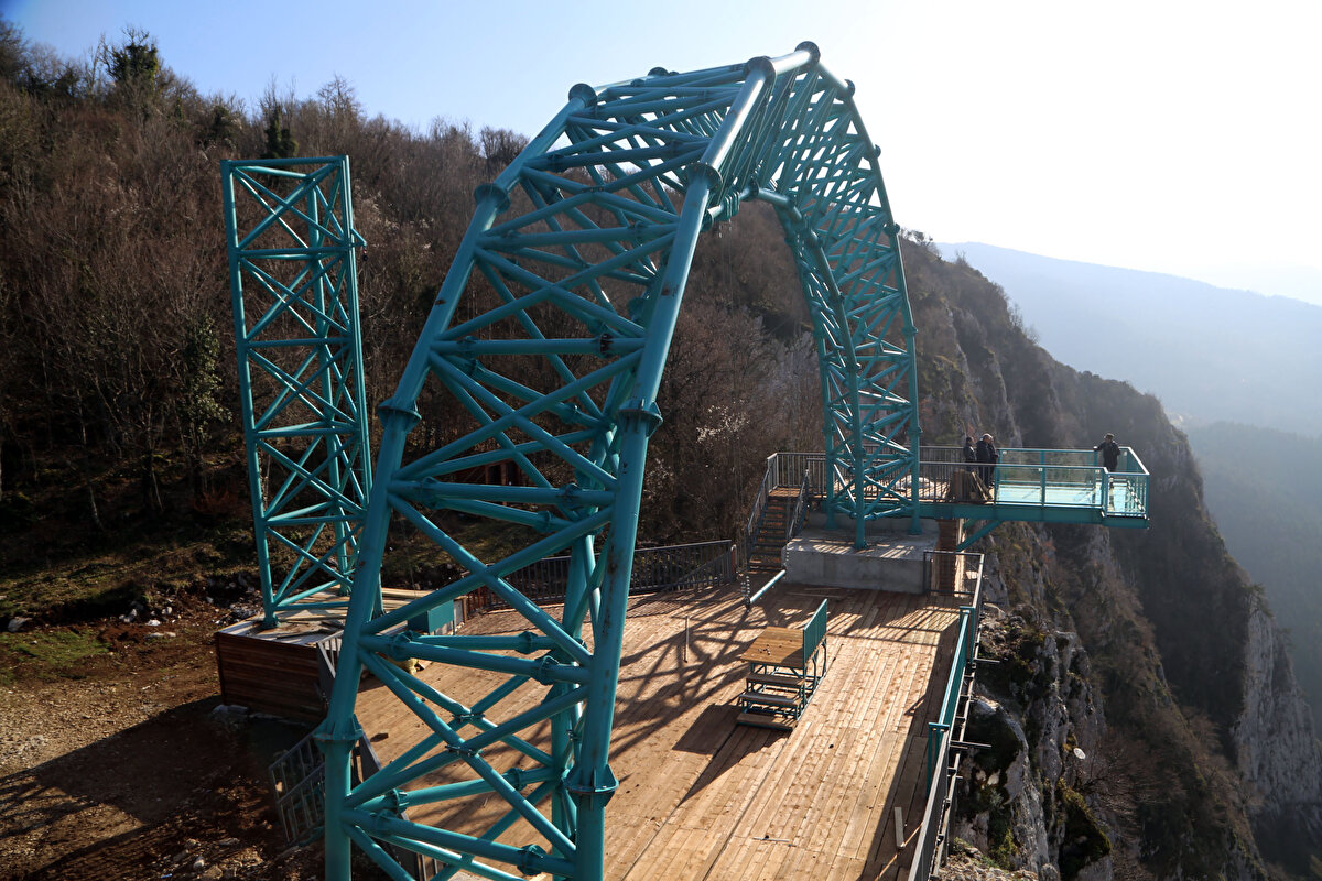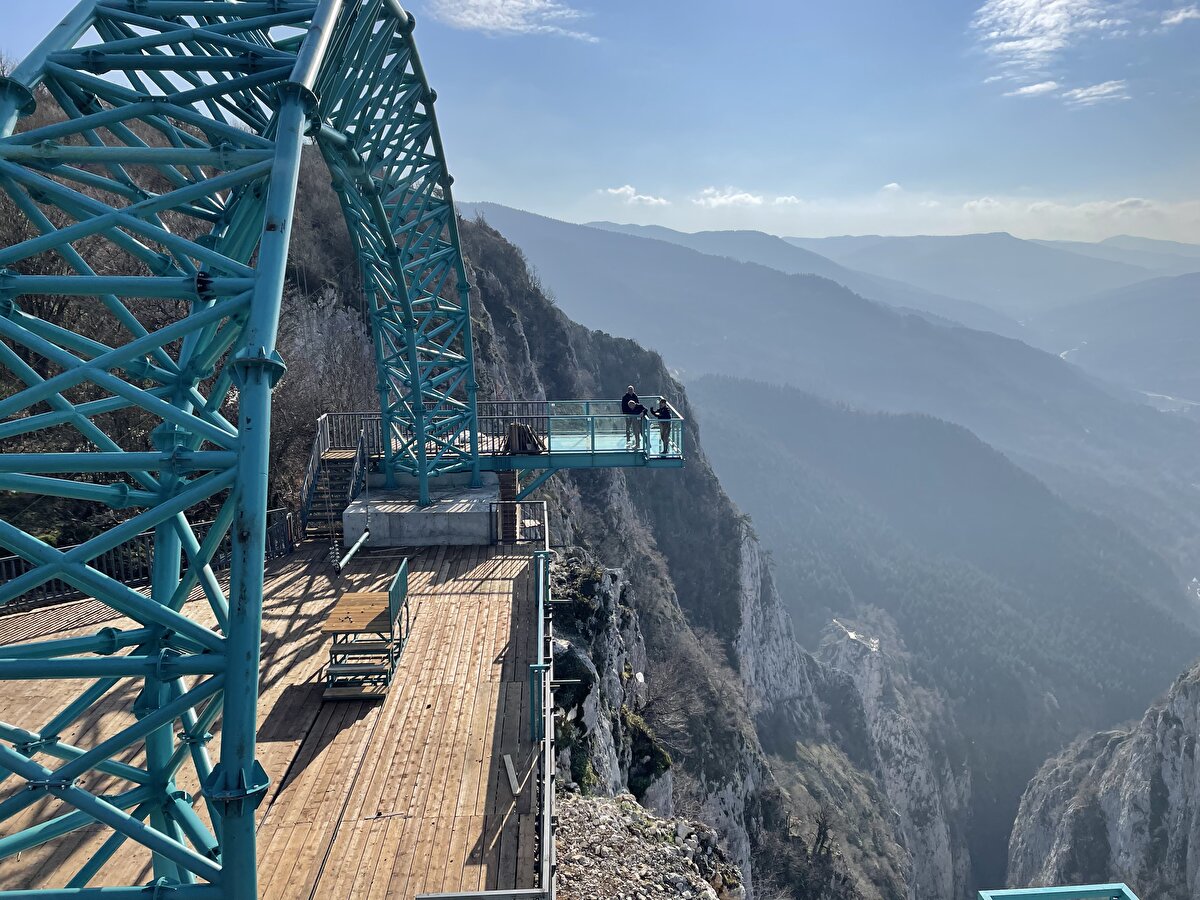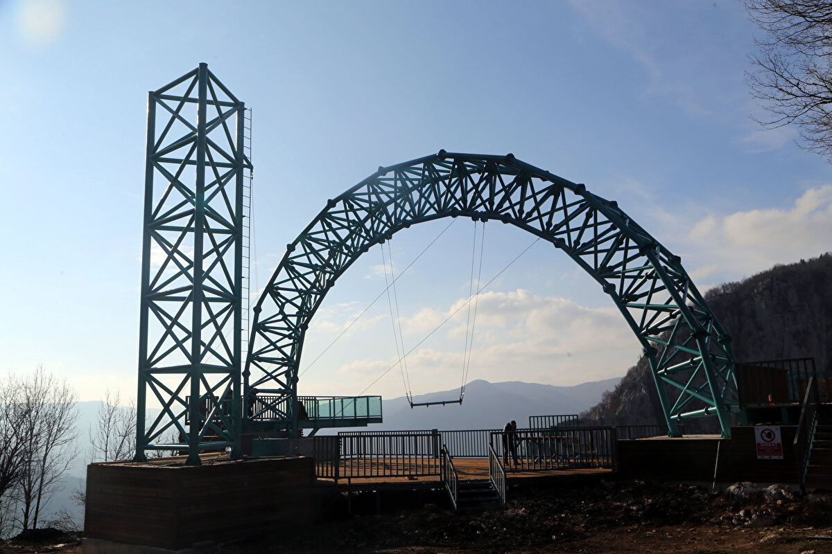 Proje kapsamında salıncağın iki tarafına yapılan cam teras sayesinde ziyaretçiler, kanyon girişini 600 metre yukarıdan izleyebilecek.