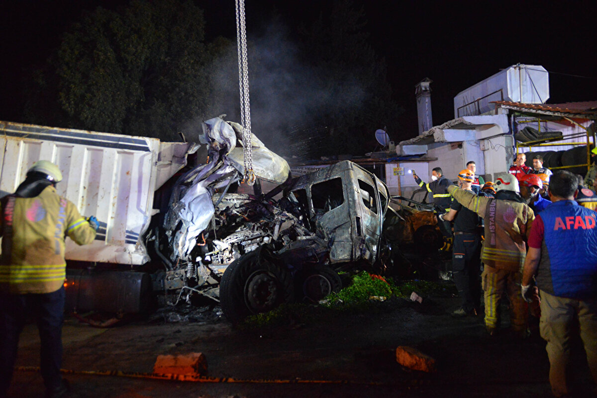 Hatay'da çekici ile çarpışan kamyonun karşı şeride geçip 11 araca çarparak durabildiği kazada 13 kişi öldü, 31 kişi yaralandı.