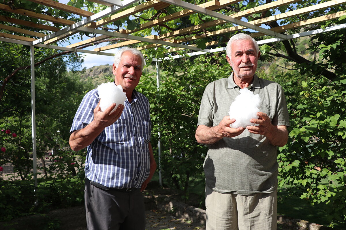 Yaz günlerinde terlediğimiz zaman, sıcak günlerde, bahçe işleri ile uğraşırken, dışarıdan gelen insanlara burada yardımcı oluyoruz, kar veriyoruz. Ayranı bu karlı suyla yaparız, içeriz. Pekmezimizi de kara dökeriz, kaşık kaşık yeriz. Bu geleneği yaşatmak için arkamızdan gelen arkadaşlarımız var ama bu işin sonuna doğru geliyoruz" diye konuştu.